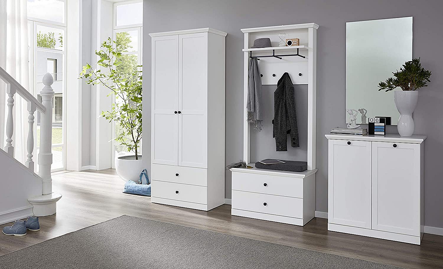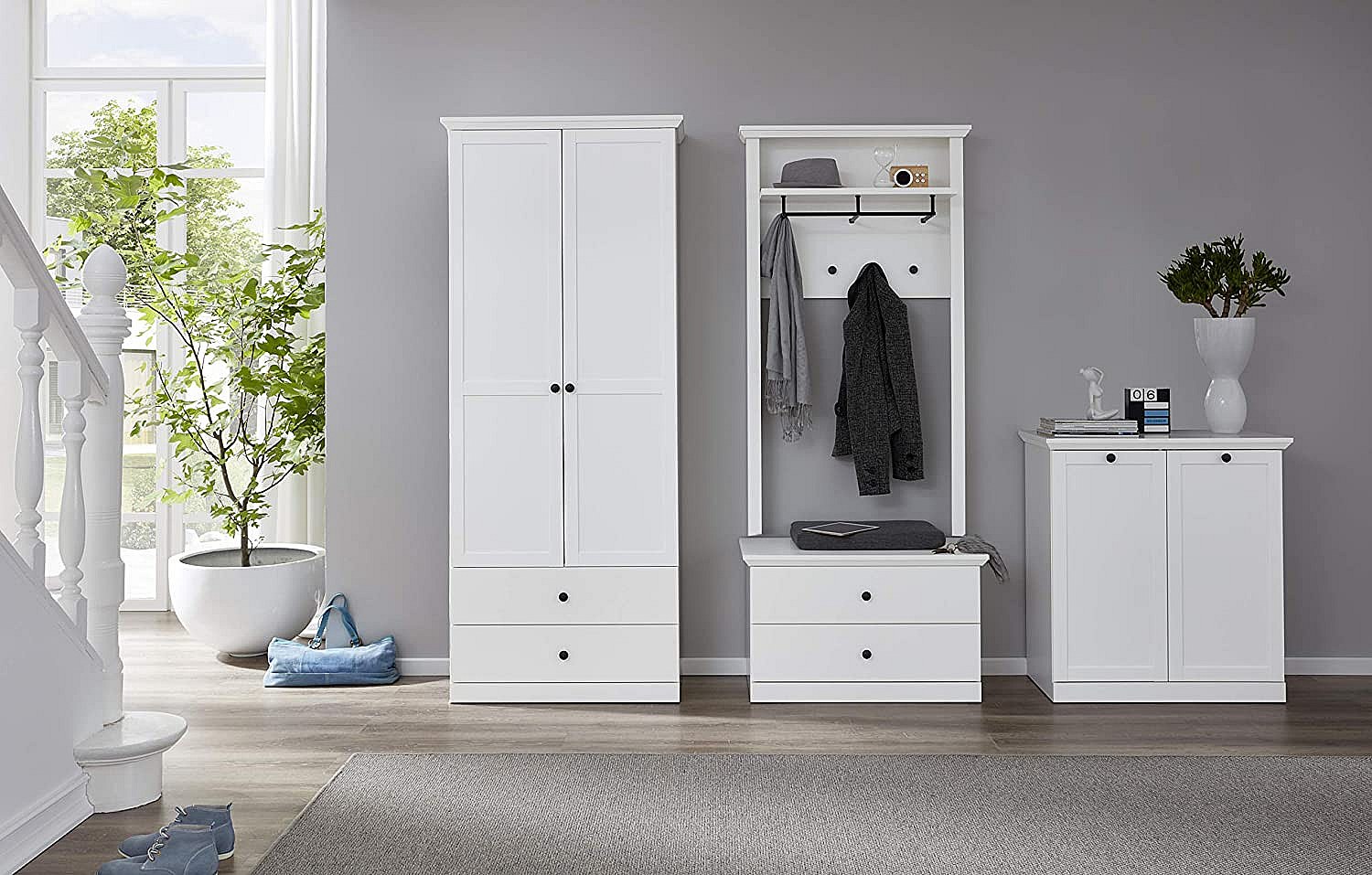 Schoenenkast 2 lades wit moderne landelijke stijl Valex 81 cm