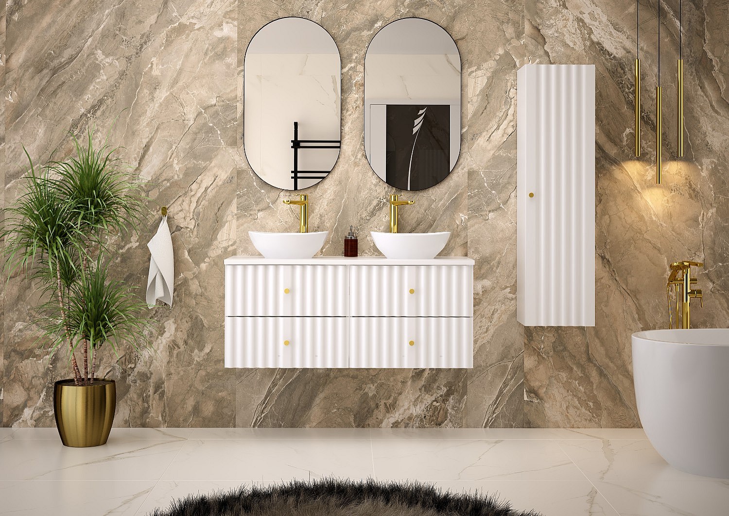 Witte badkamerset 120 cm Kast met blad Geribbelde fronten Arcos