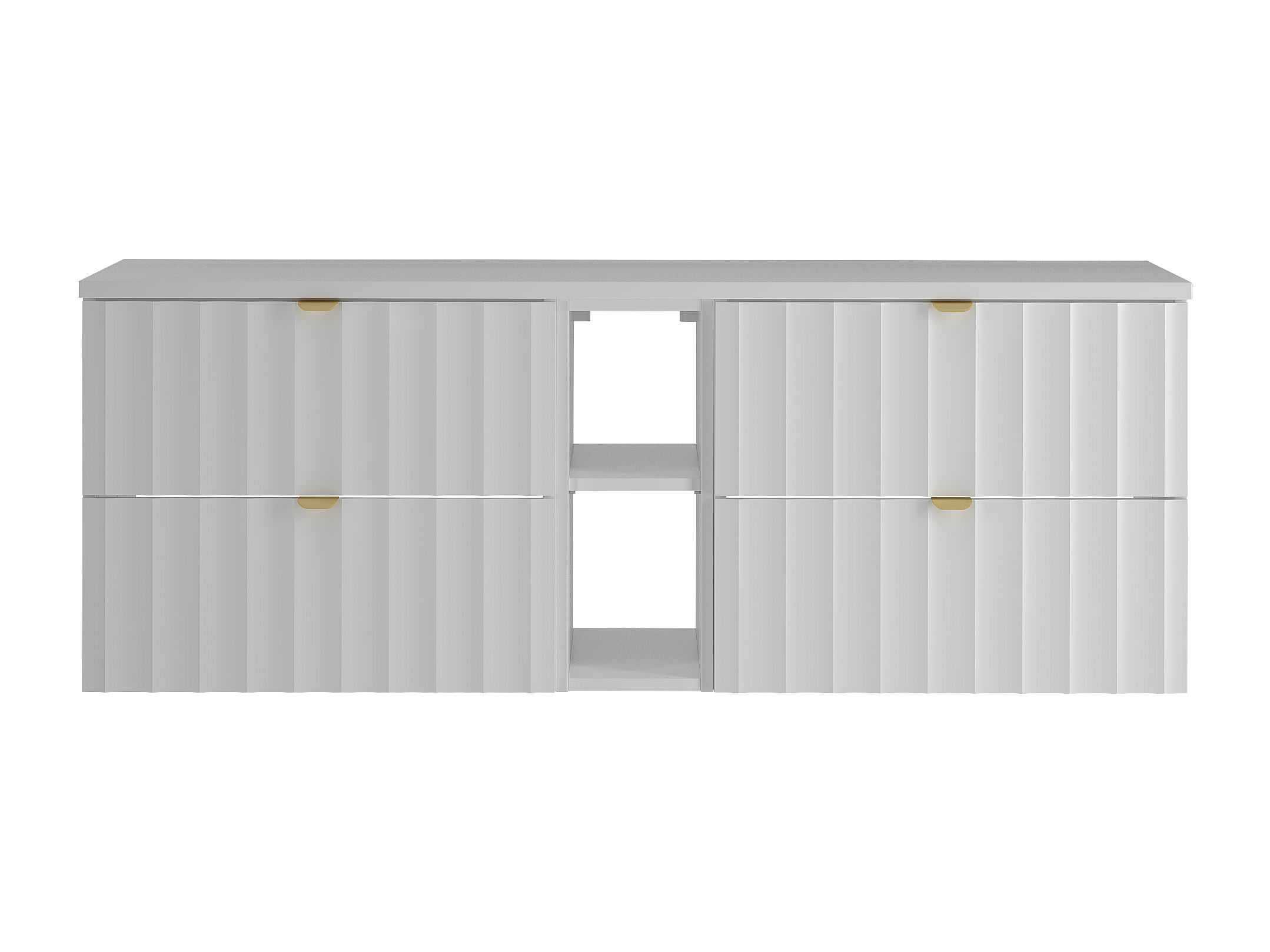 Witte badkamerset 140 cm Kast met blad en rek Geribbelde fronten Aqua
