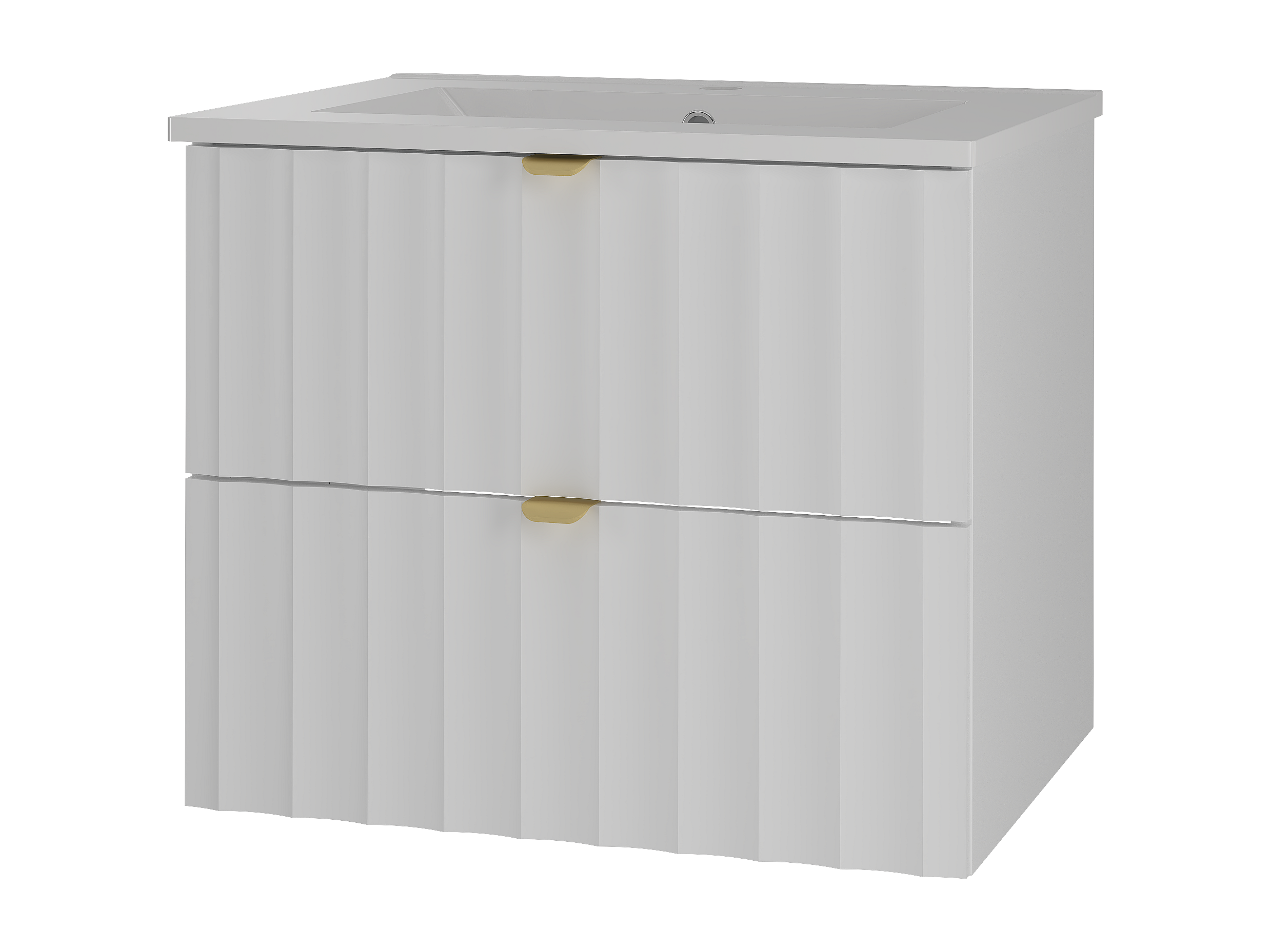 Witte badkamerset 60 cm Kast met wastafelblad Geribbelde fronten Arcos