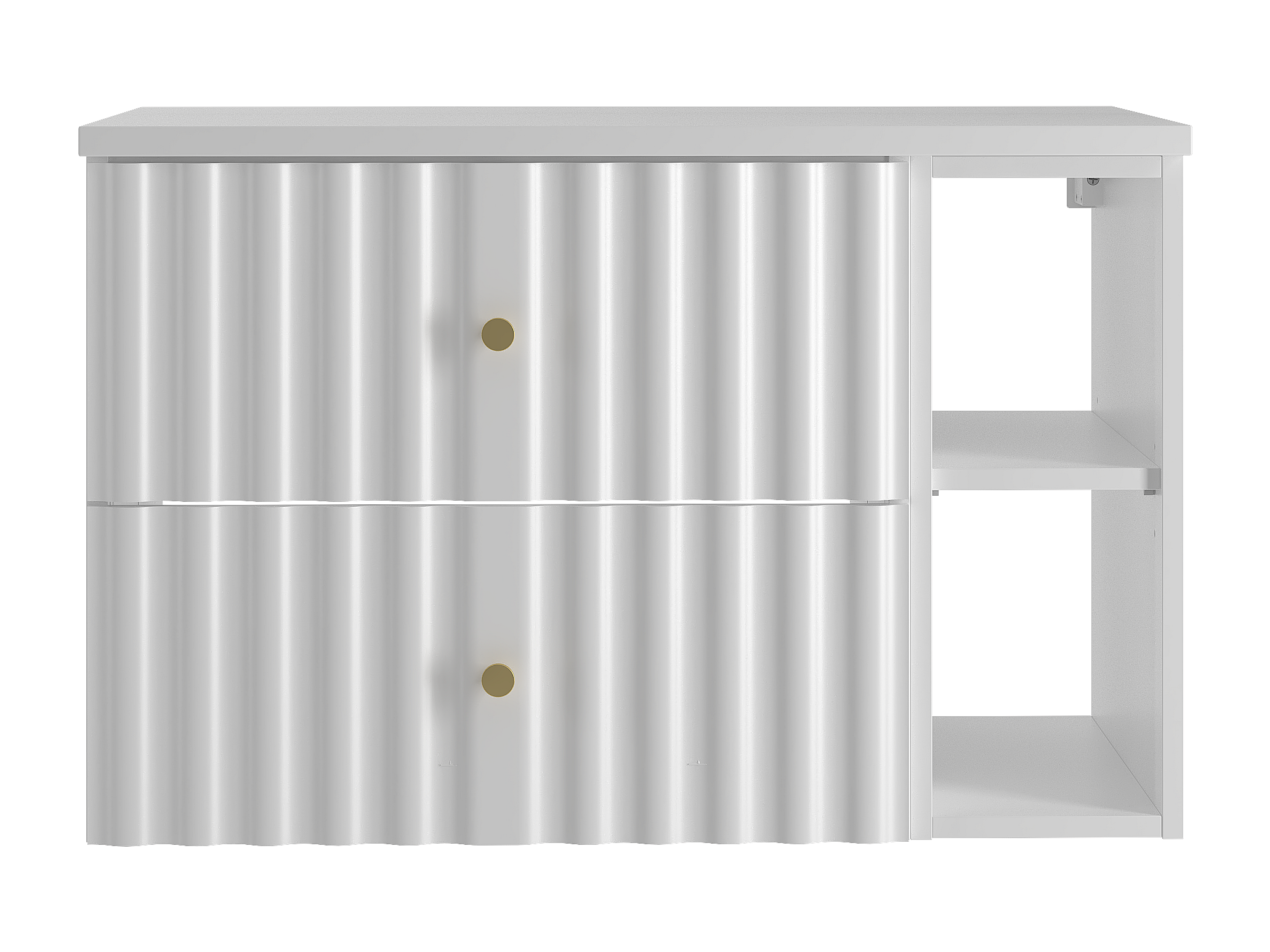 Witte badkamerset 80 cm Kast met blad en rek Geribbelde fronten Aqua