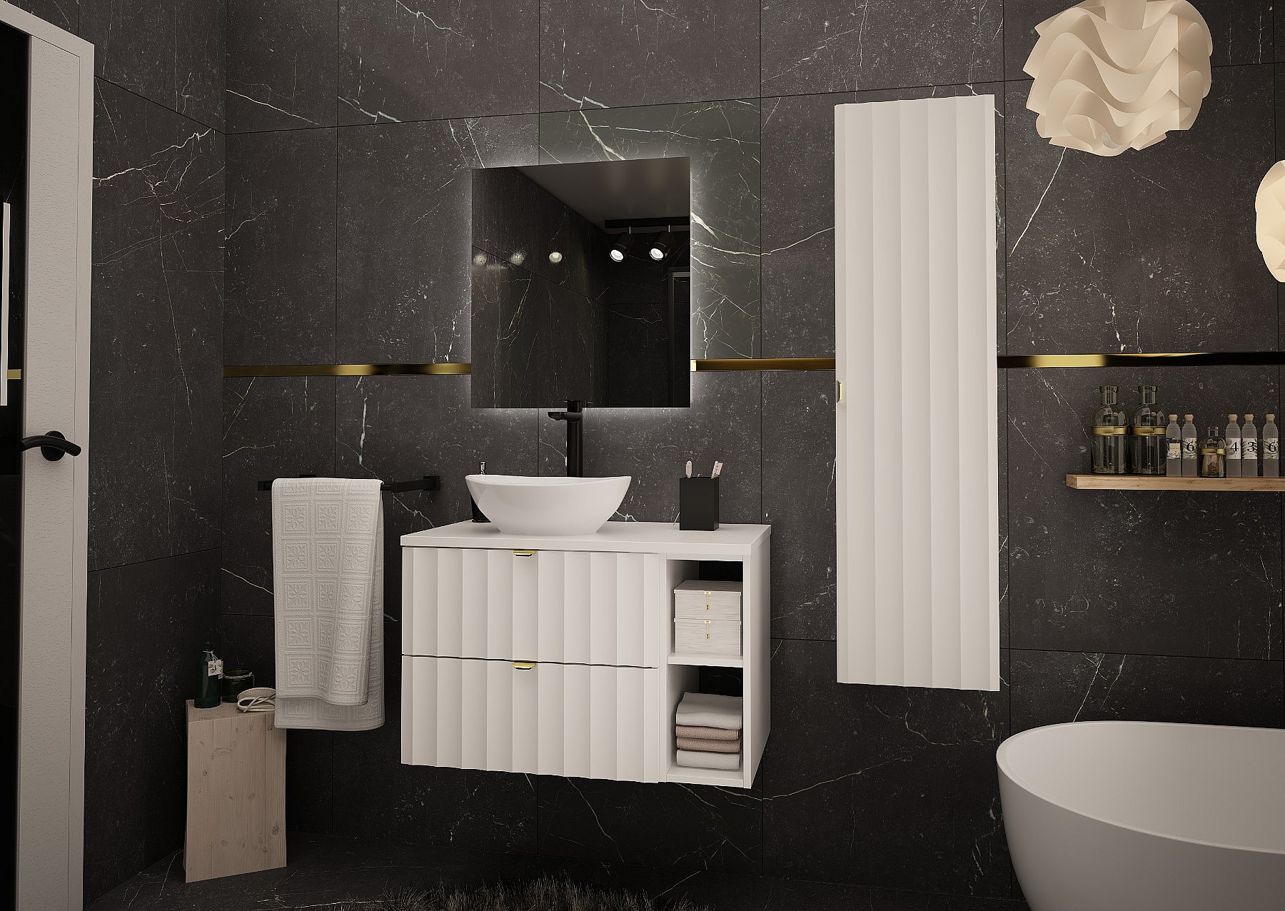 Witte badkamerset 80 cm Kast met blad Geribbelde fronten Arcos
