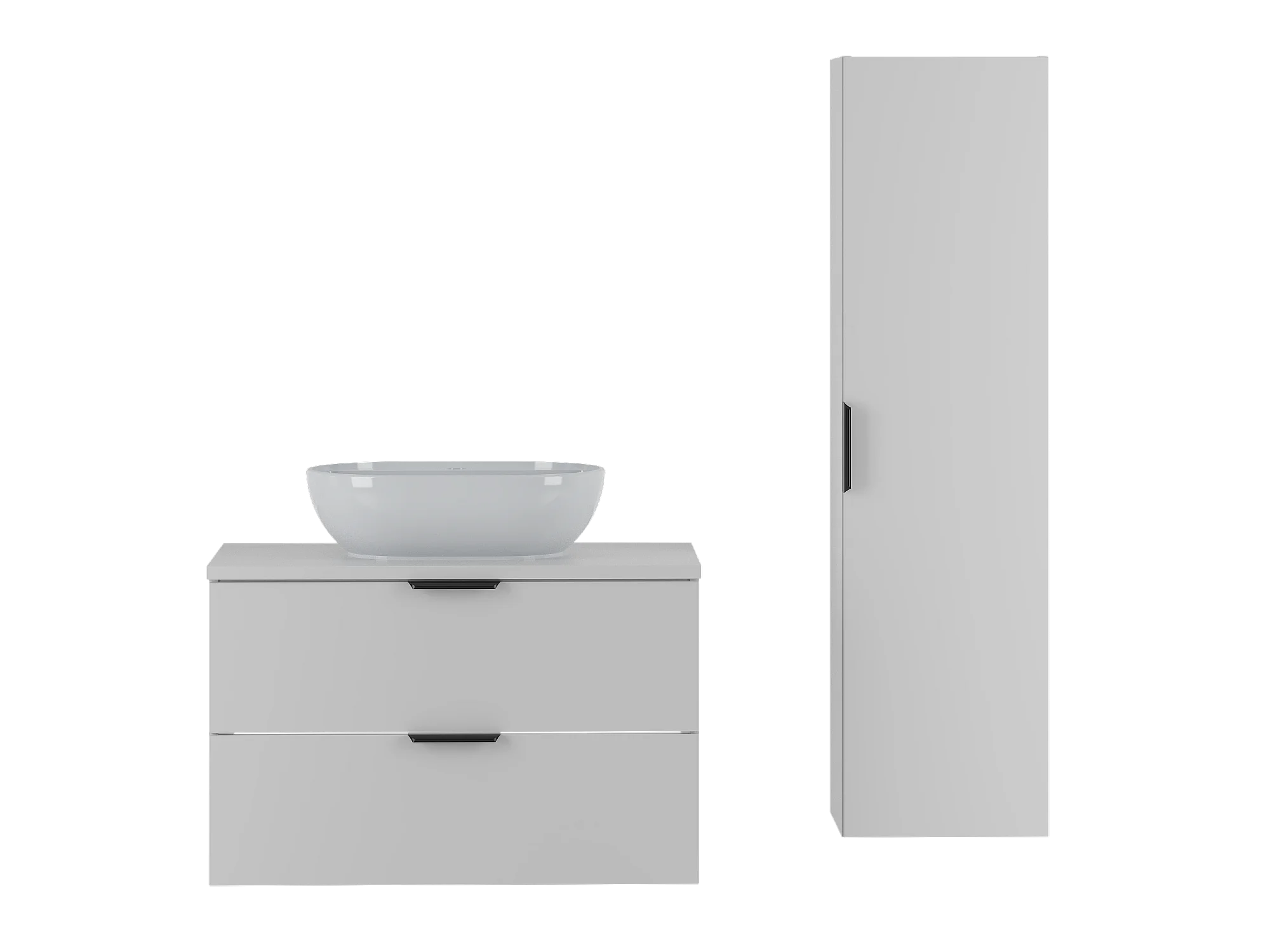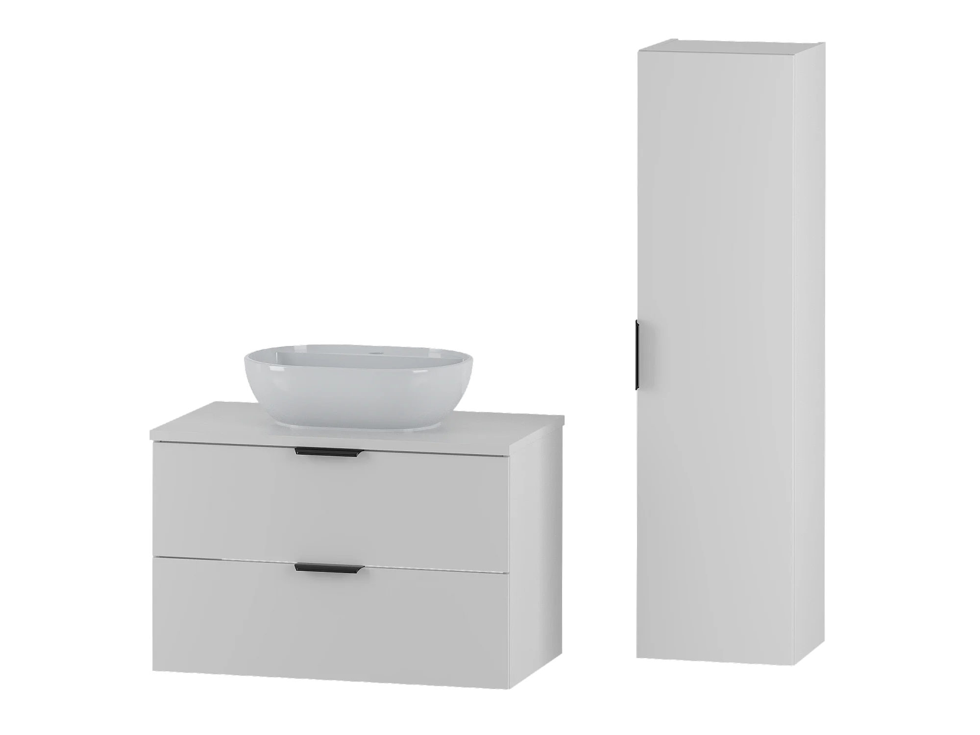 Witte badkamerset 80 cm Kast met wastafelblad Wastafelkolom Pile