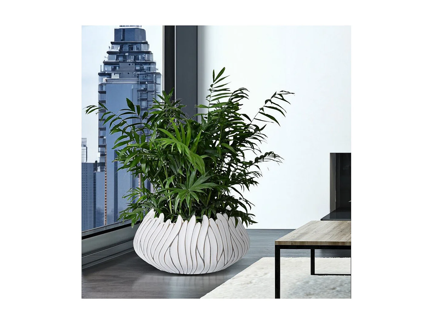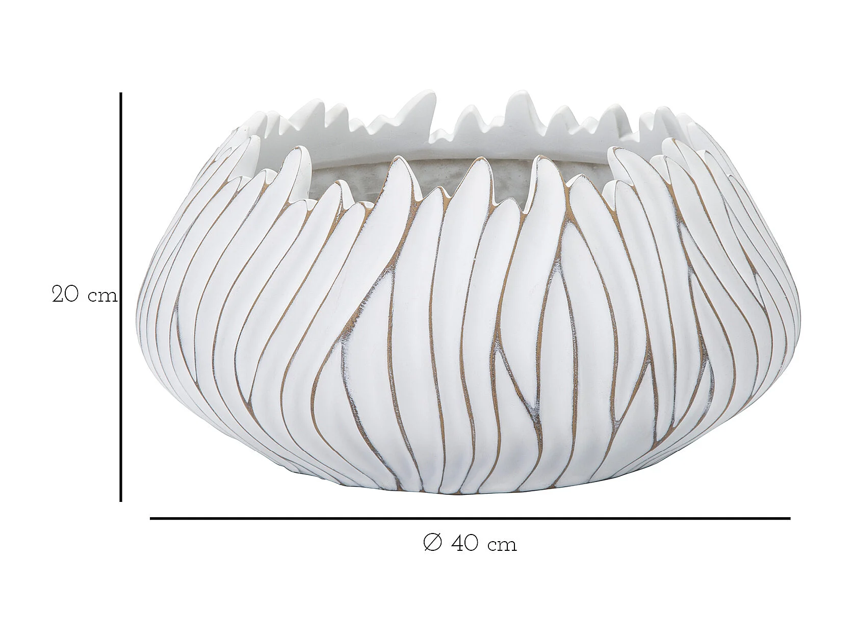 Witte harscachepot met reliëfdecoraties Ø 40x20 cm