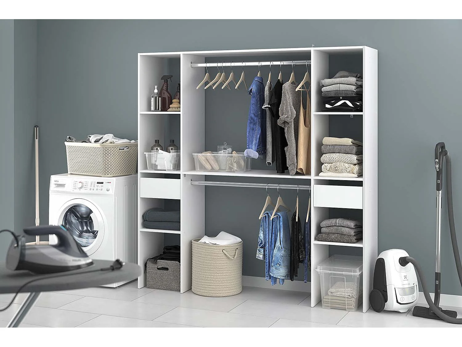 Witte Kledingkast 6 Planken + 2 Laden + 2 Kledingstangen 180x40x180 ELYSEE