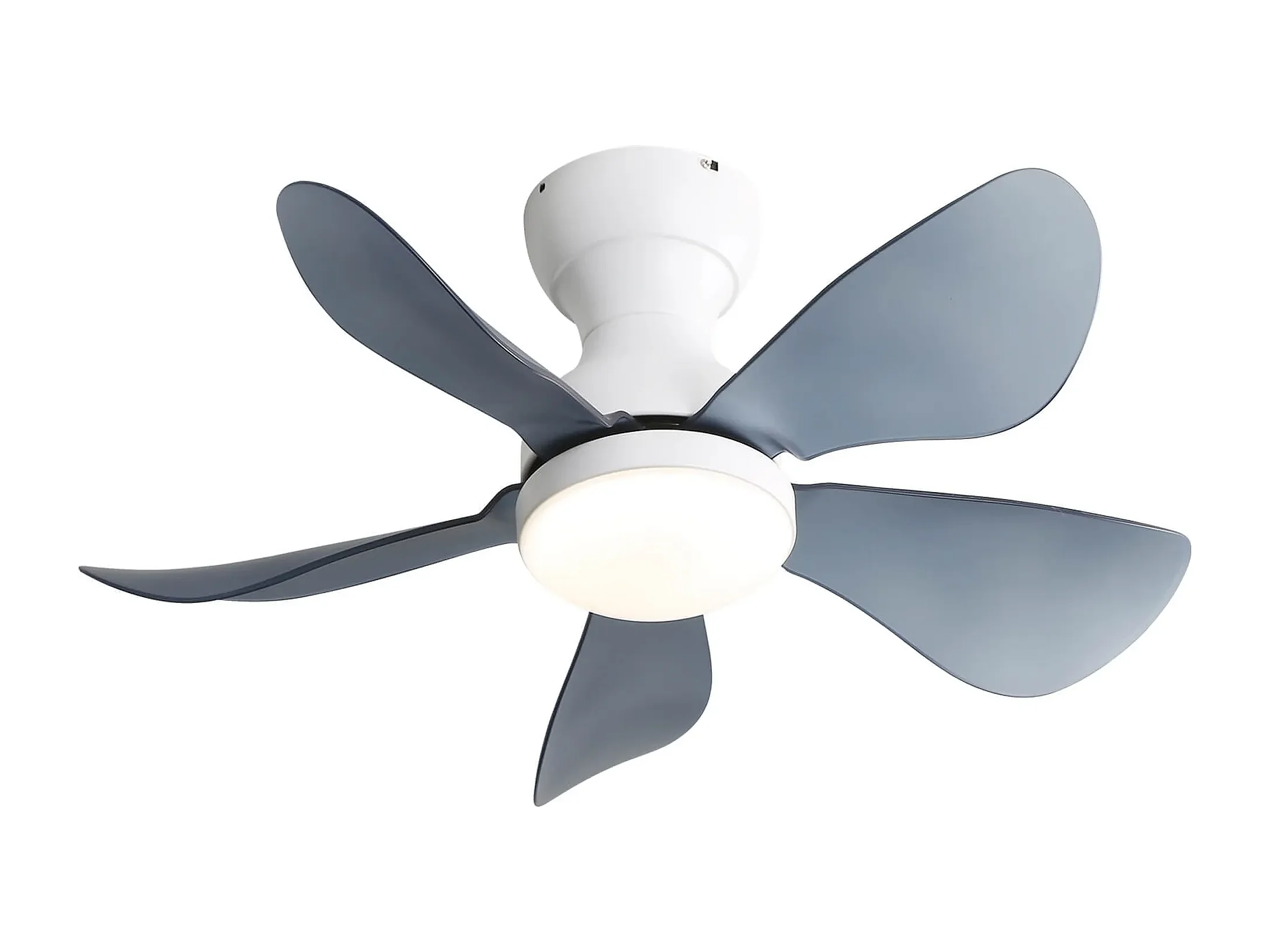 Witte plafondventilator met geïntegreerde LED-verlichting, 5 transparante ABS-bladen, DC-motor, inbouwmontage (73,66x73,66x29,97cm)