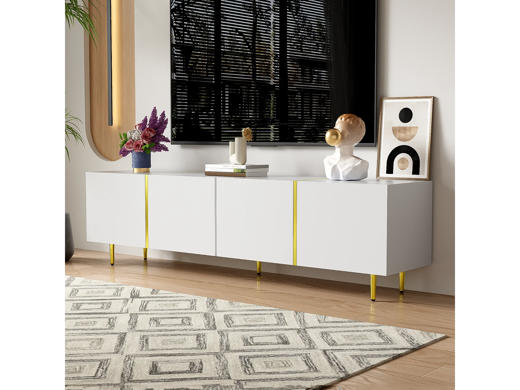 Witte tv-standaard, tv-meubel met 4 deuren, tv-meubel voor de woonkamer met gouden accenten, 170x35x46cm