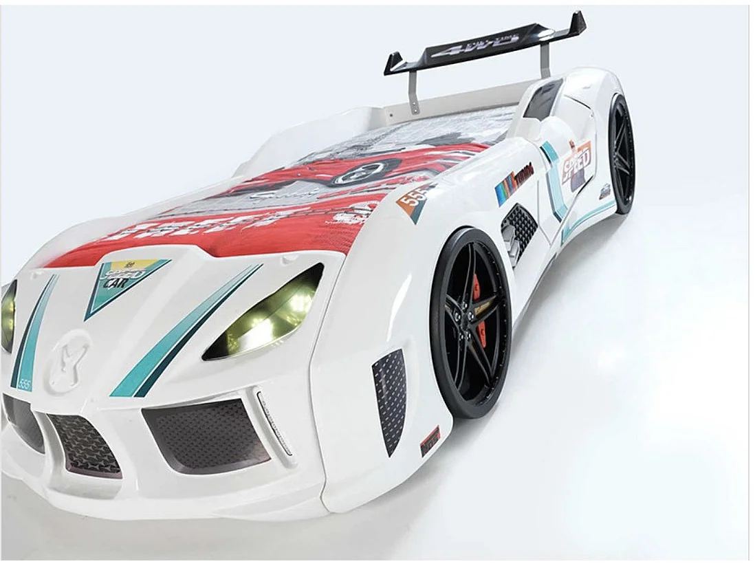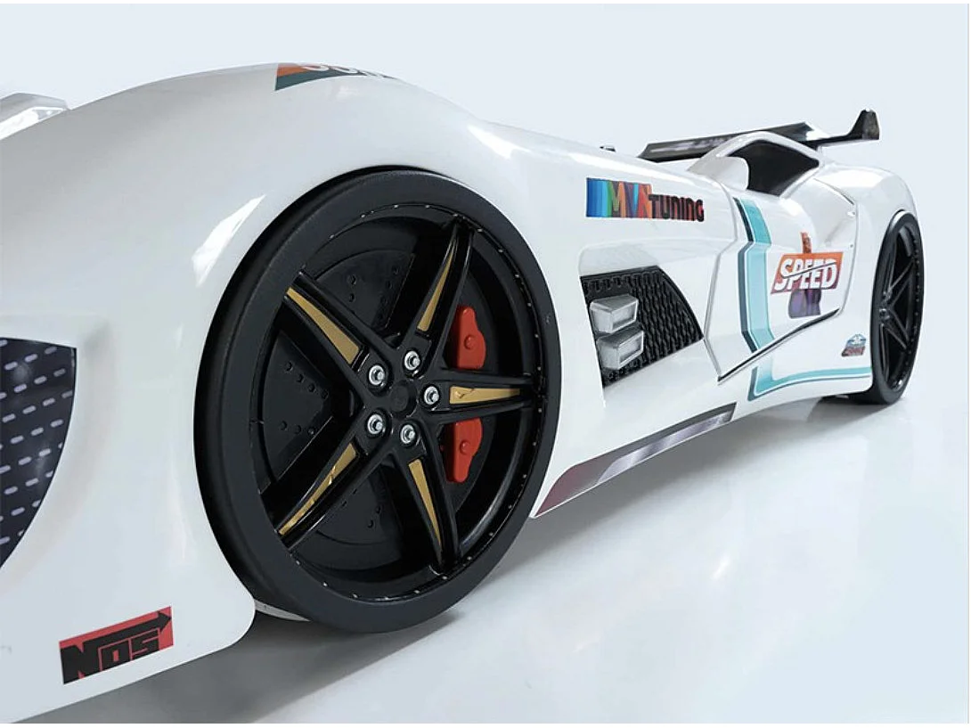 Autobed TURBO V8 met LED-verlichting en geluidseffecten – 90 x 190 cm-Kleur Wit