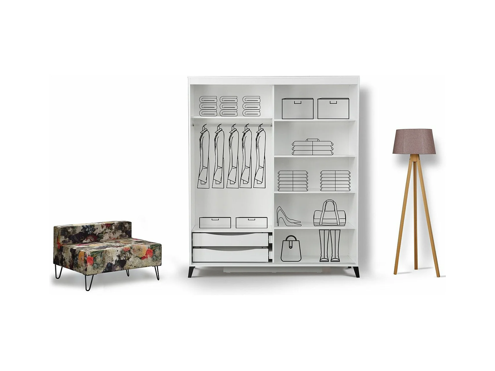 Gerpa kledingkast 2 deuren, 1 spiegeldeur, 3 lades wit.