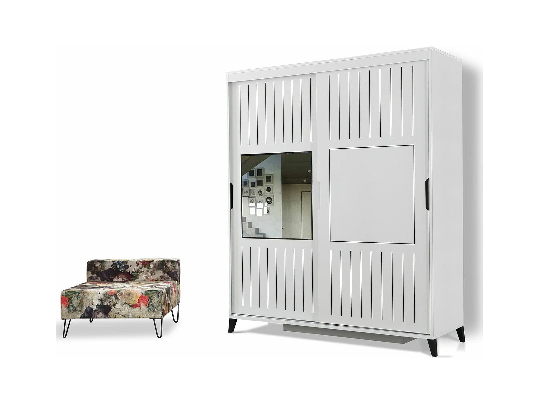 Witte volwassenenkast 2 schuifdeuren met spiegel Marka-Breedte 160cm