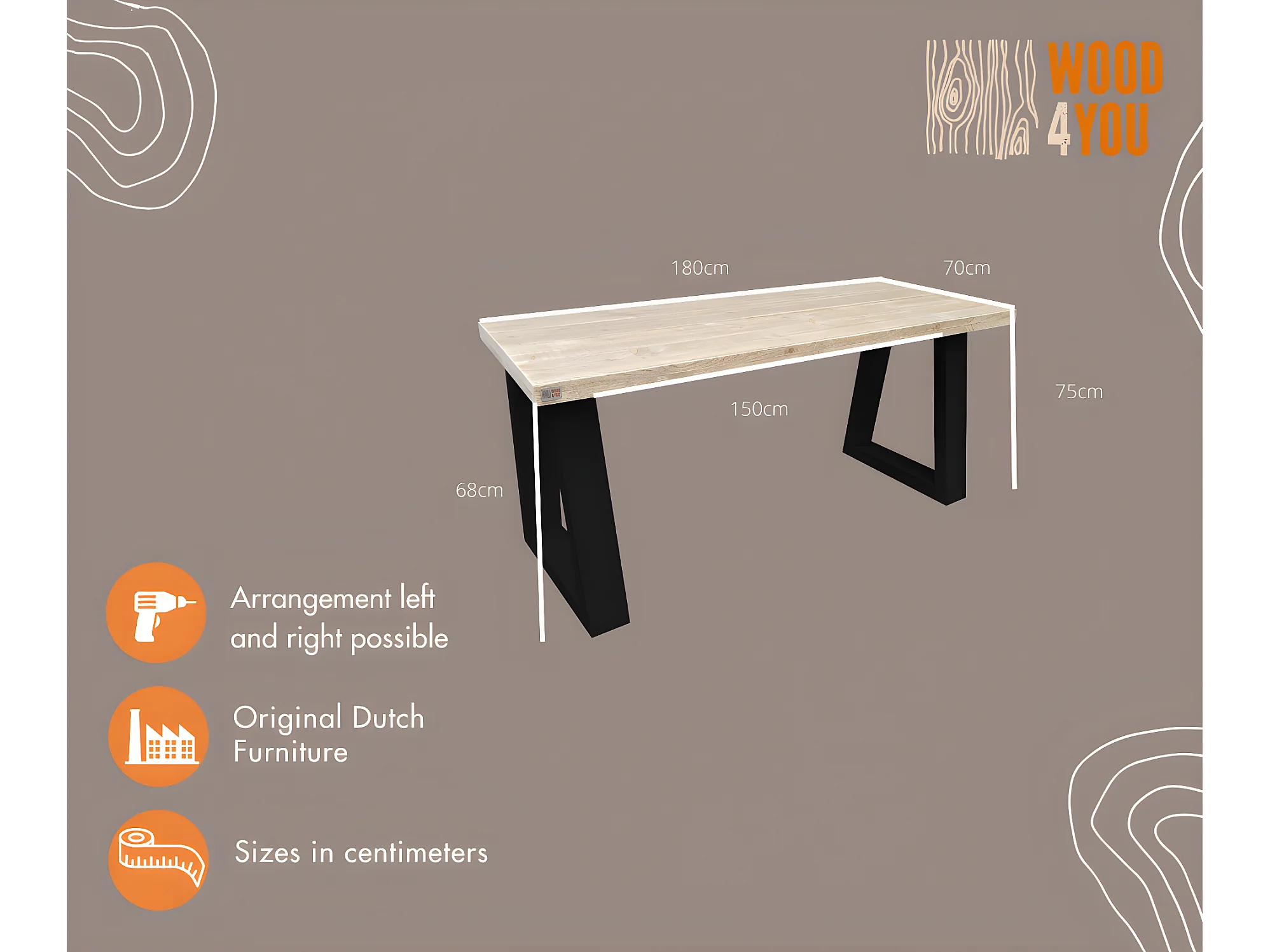 Wood4you - Bureau - Vancouver steigerhout 180Lx70Dx75H Zwart