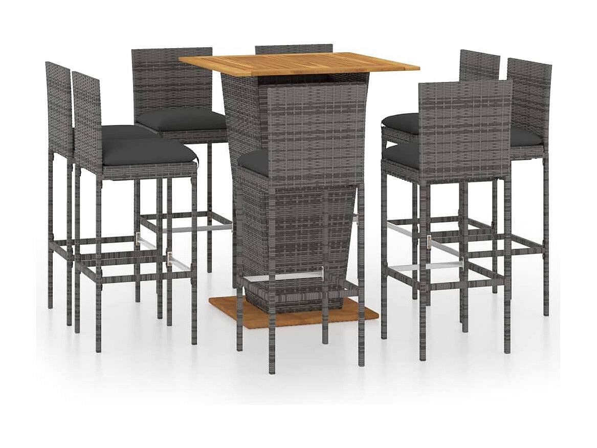 Woodmoor 9-delige Tuinbarset met kussens poly rattan grijs