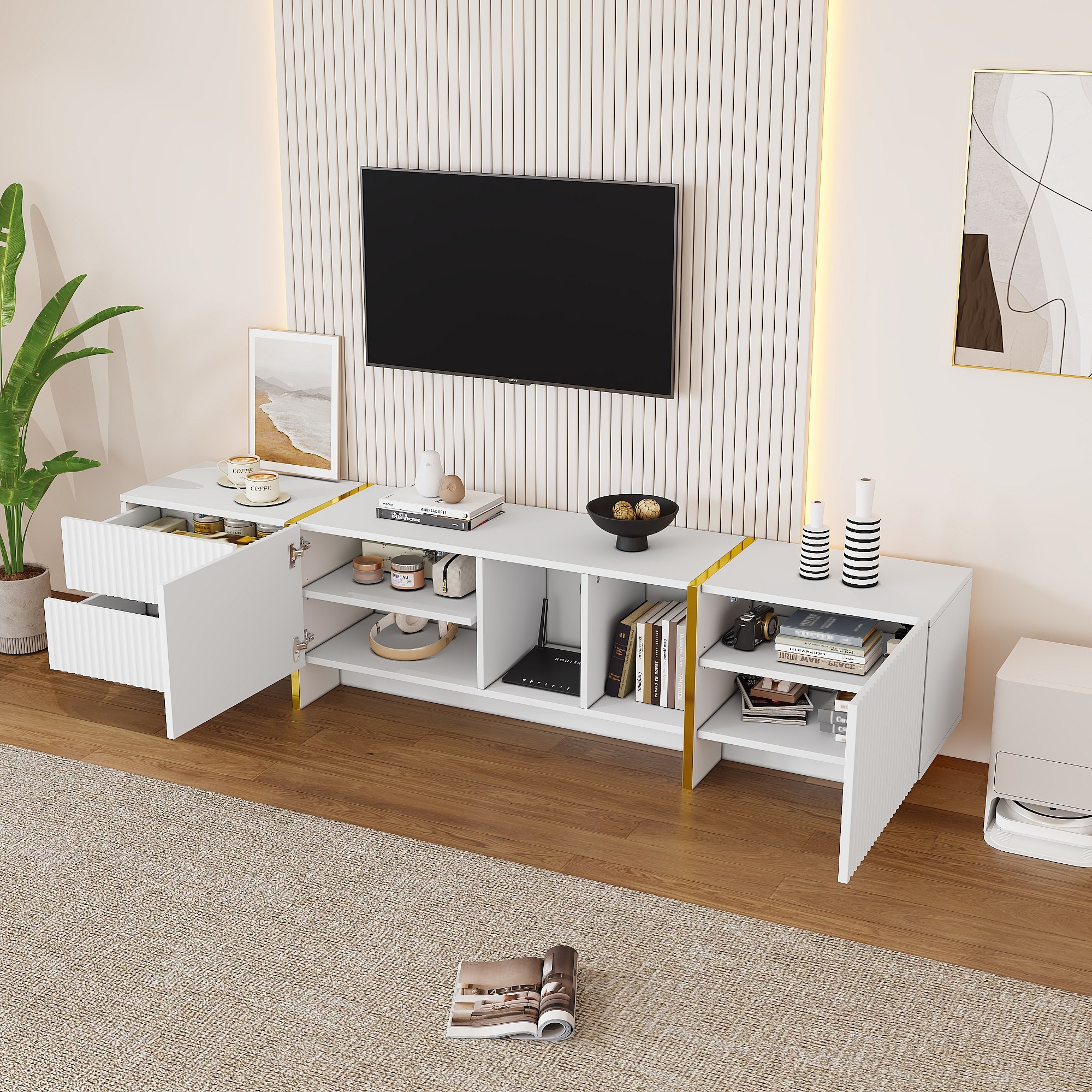 Woonkamer TV-meubel met 2 deuren, 2 laden, houten opbergmeubel - verstelbare metalen poten - wit (180x40x40 cm)