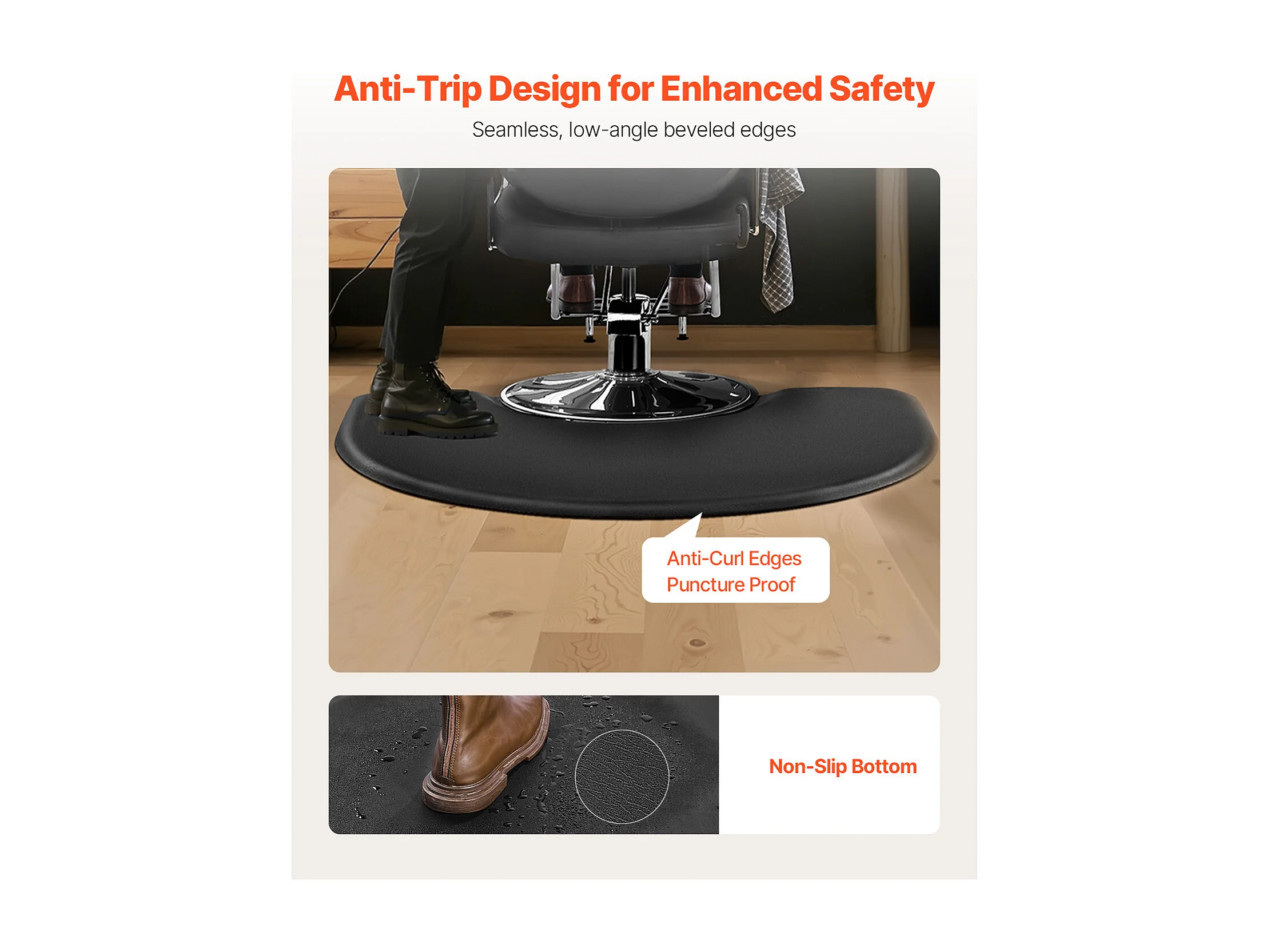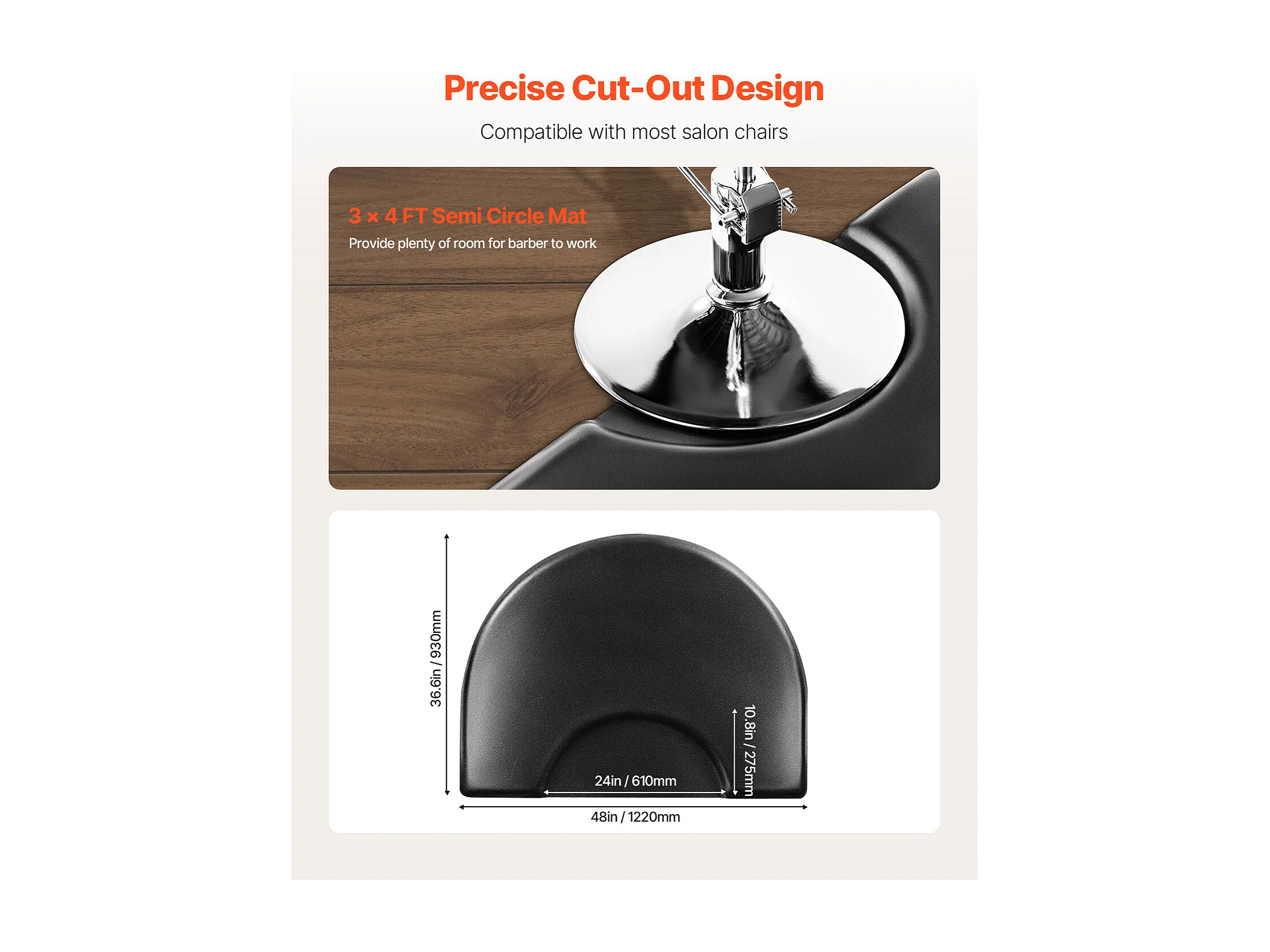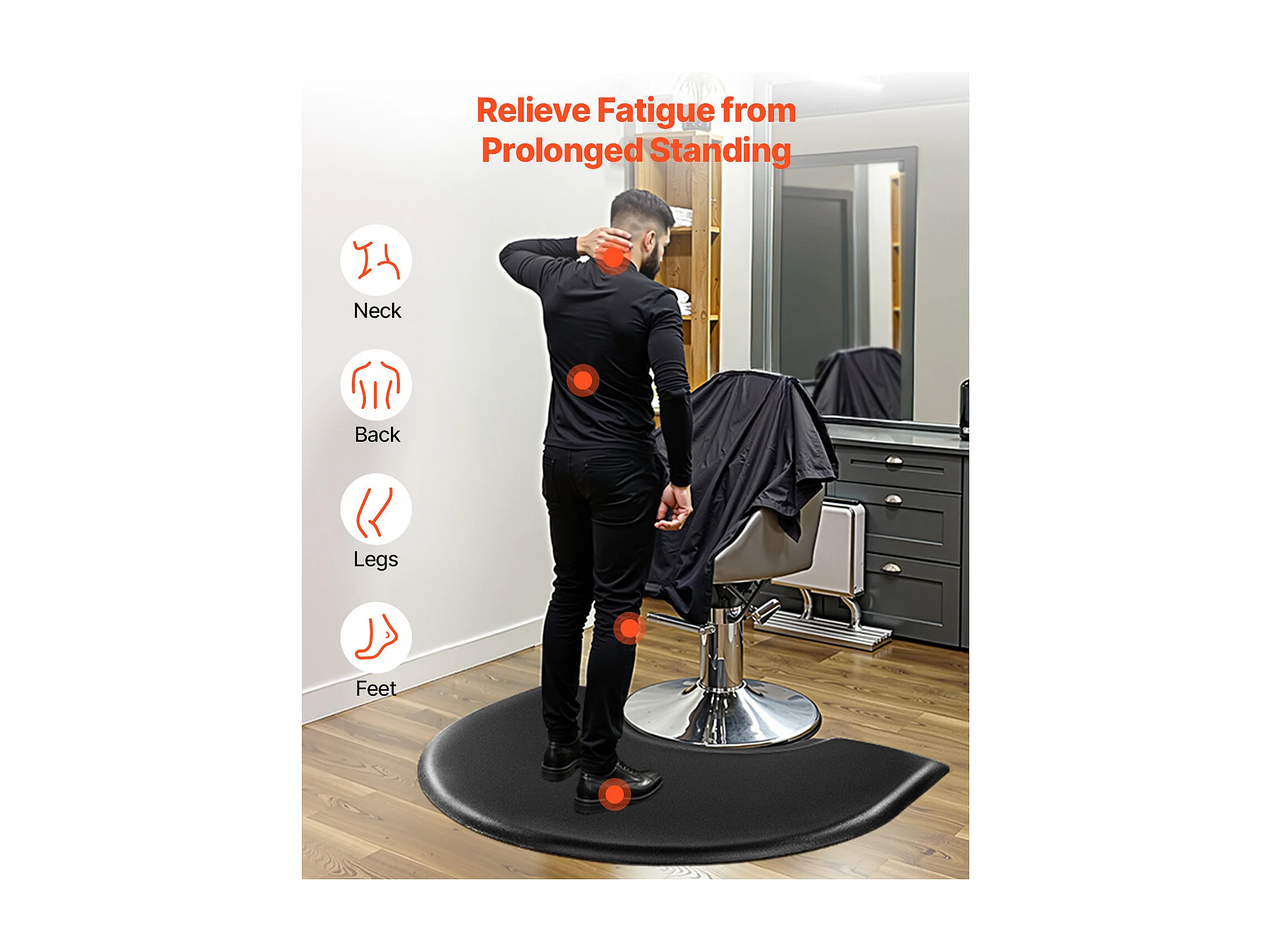 Woonkamerkleed van SucceBuy voor Kappers, 93x122cm, Halfronde Staand Kleed, Anti-Vermoeidheidskleed voor Kapperssalons, PVC-Oppervlakte