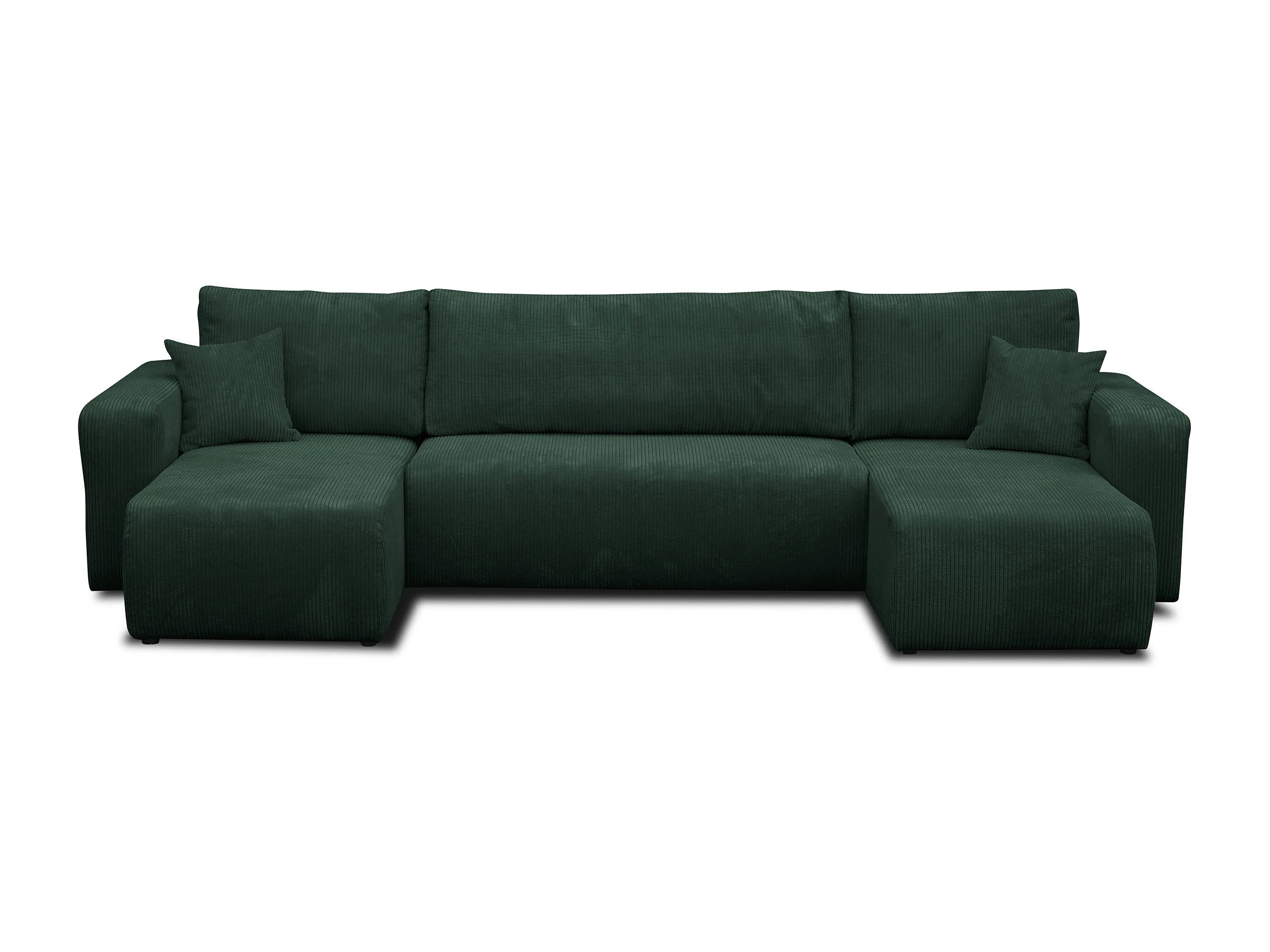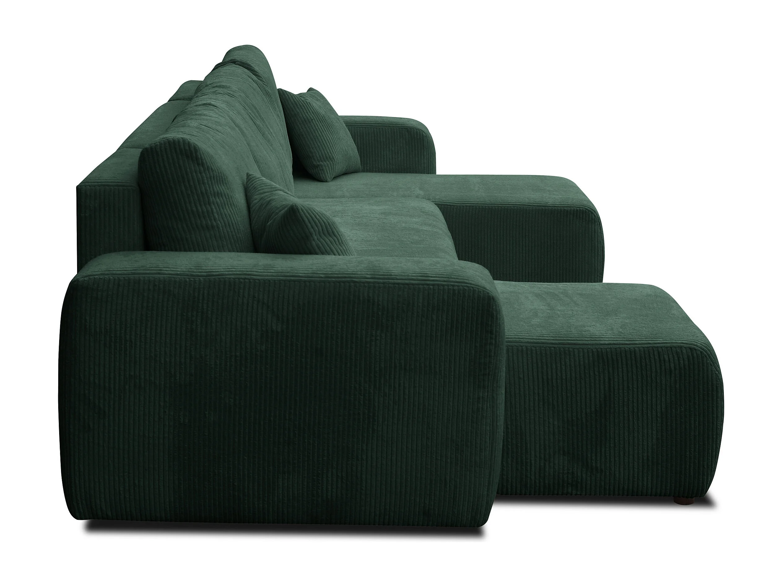 Woonkamermeubel Luna U, bank in U-vorm met slaapfunctie en bedbak, kleur: groen, corduroy