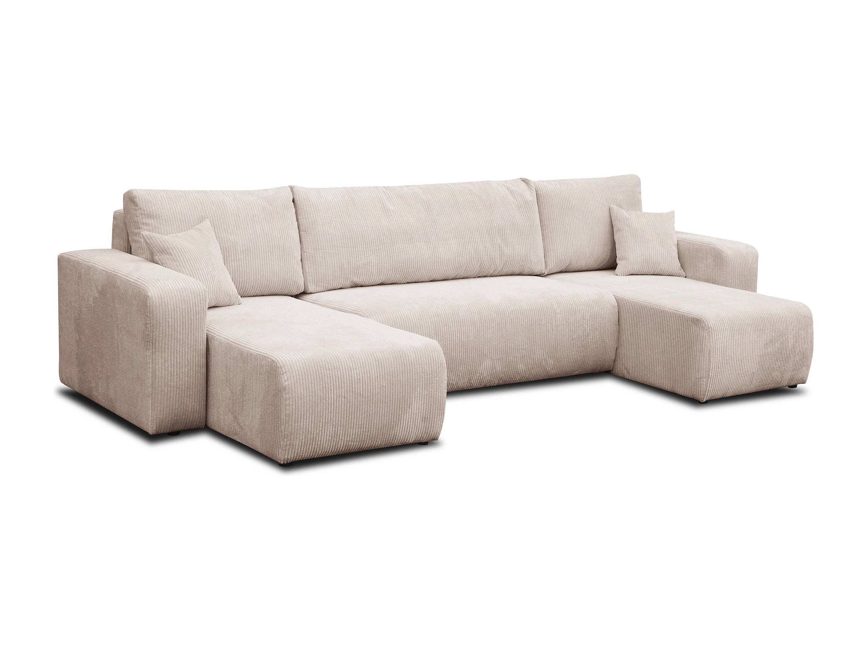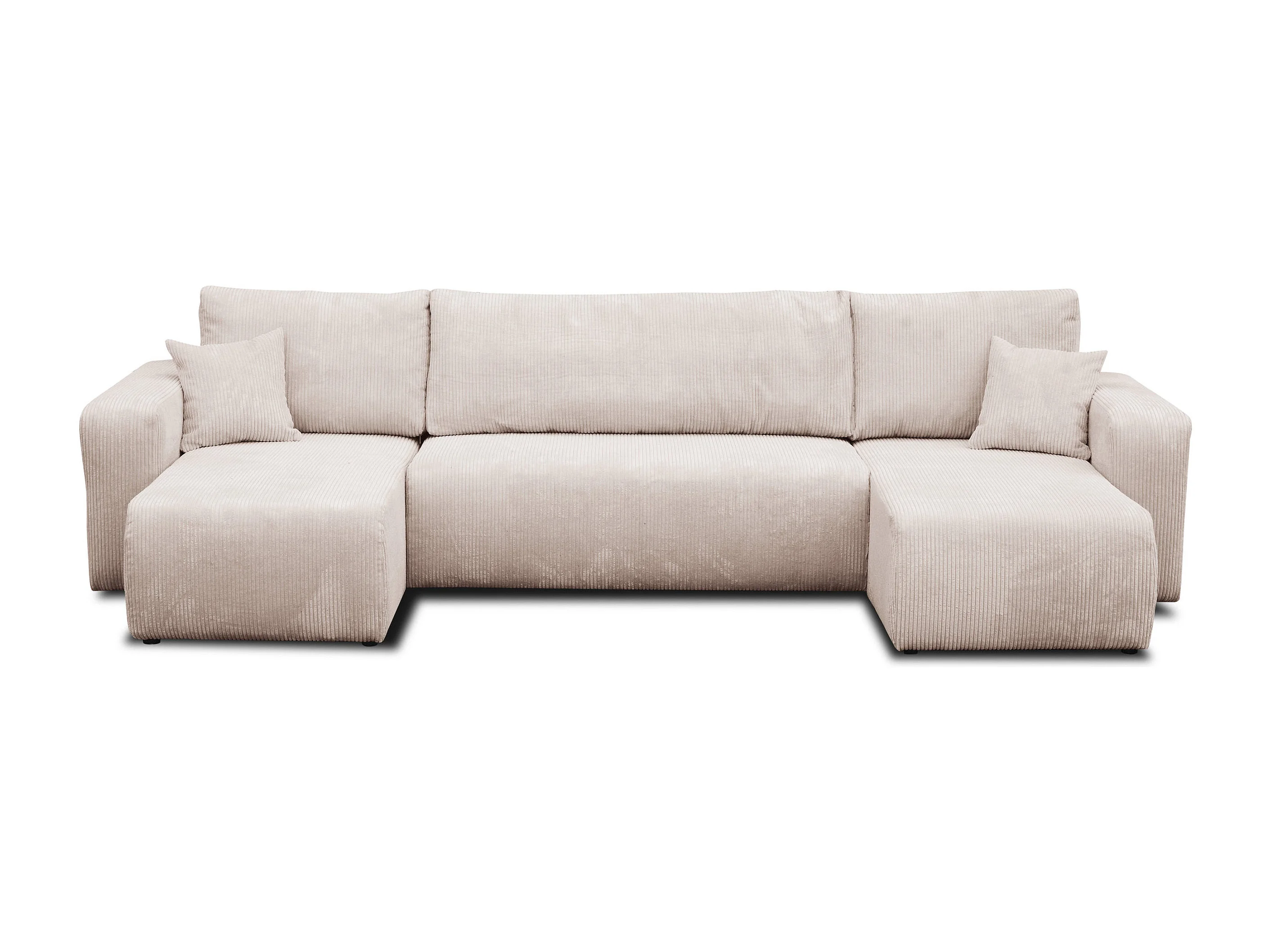 Woonkamermeubel Luna U, U-vormige bank met slaapfunctie en bedbak, kleur: beige, corduroy