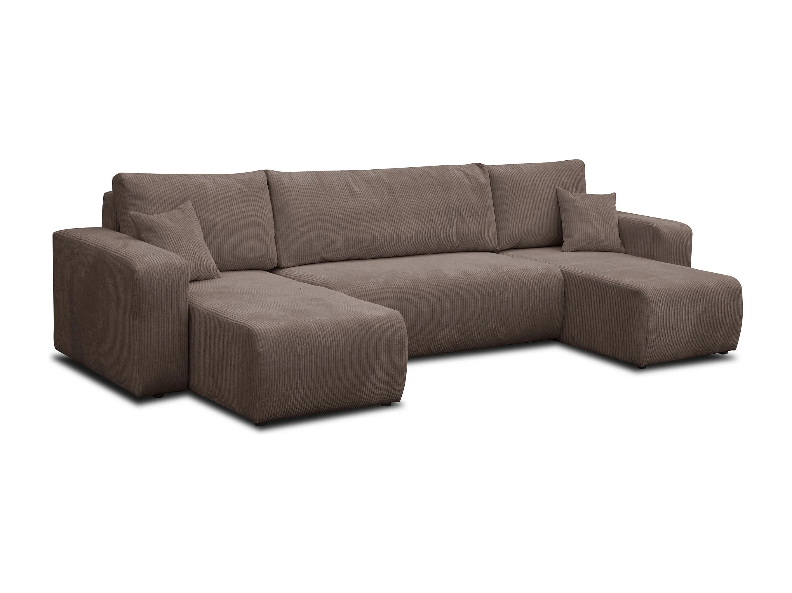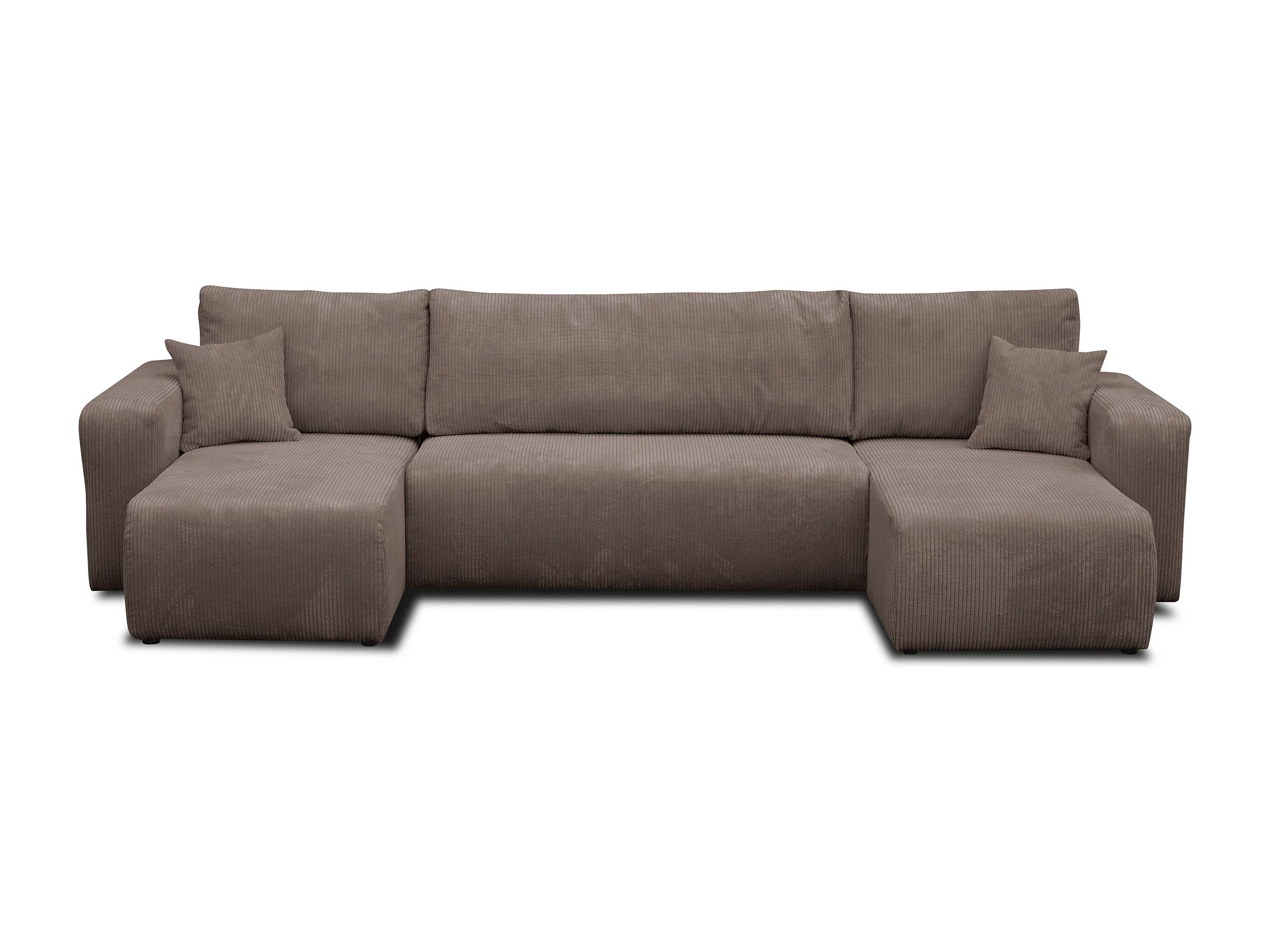 Woonkamermeubel Luna U, U-vormige bank met slaapfunctie en bedbak, kleur: lichtbruin, corduroy