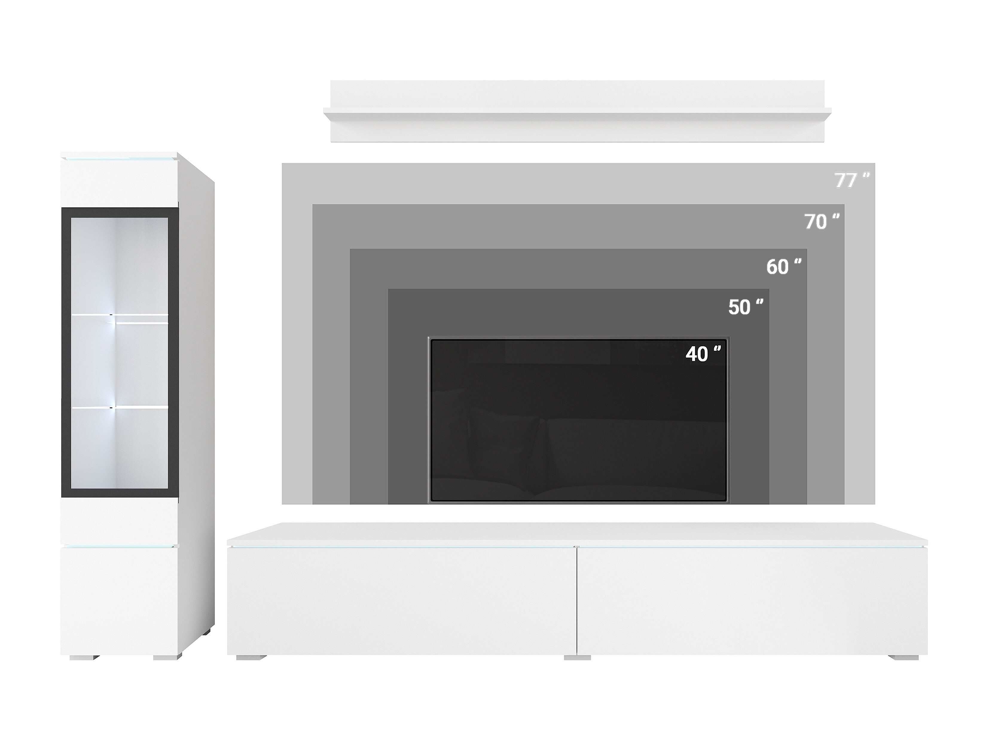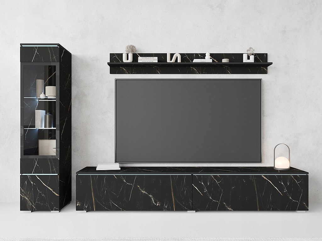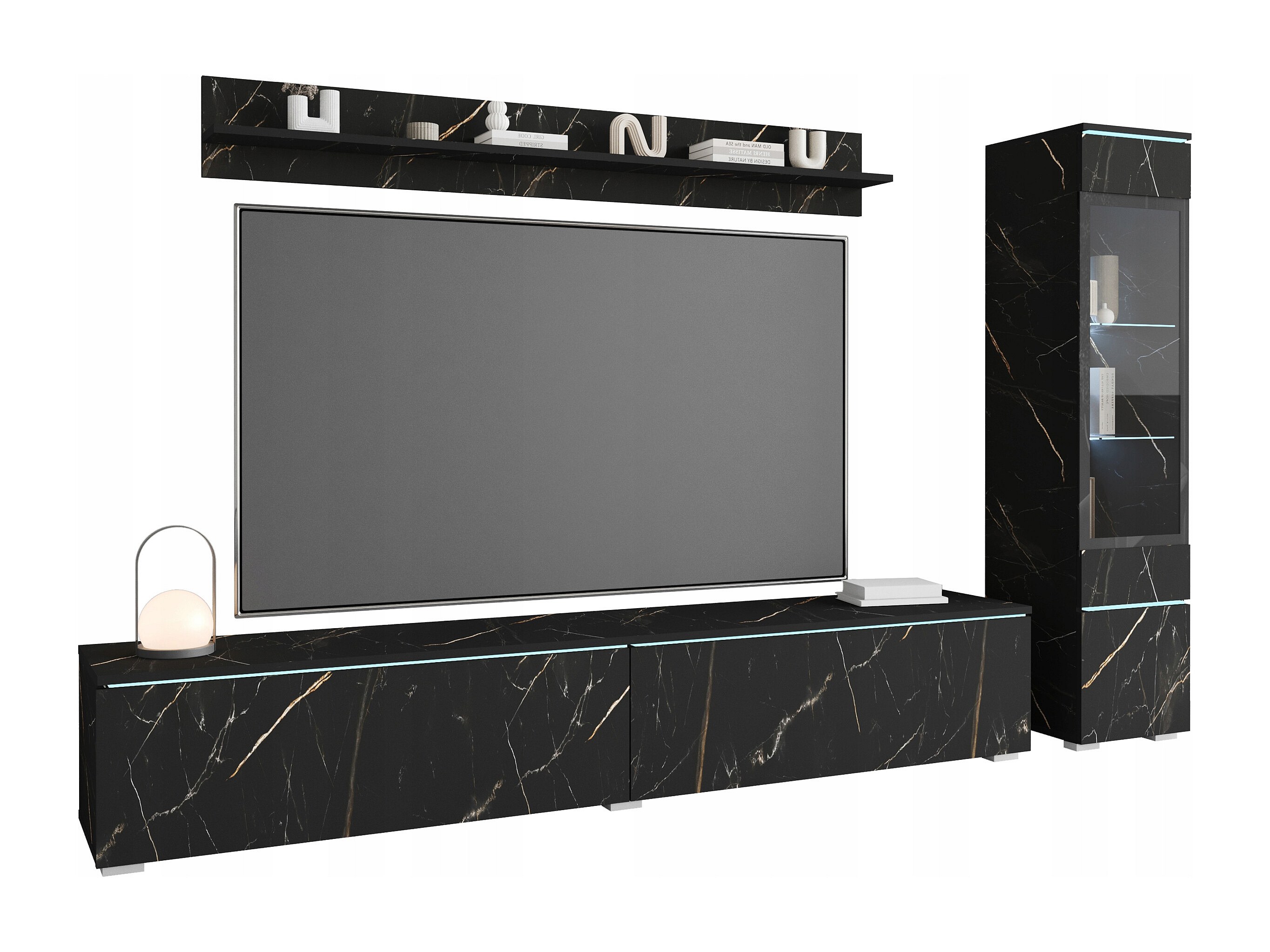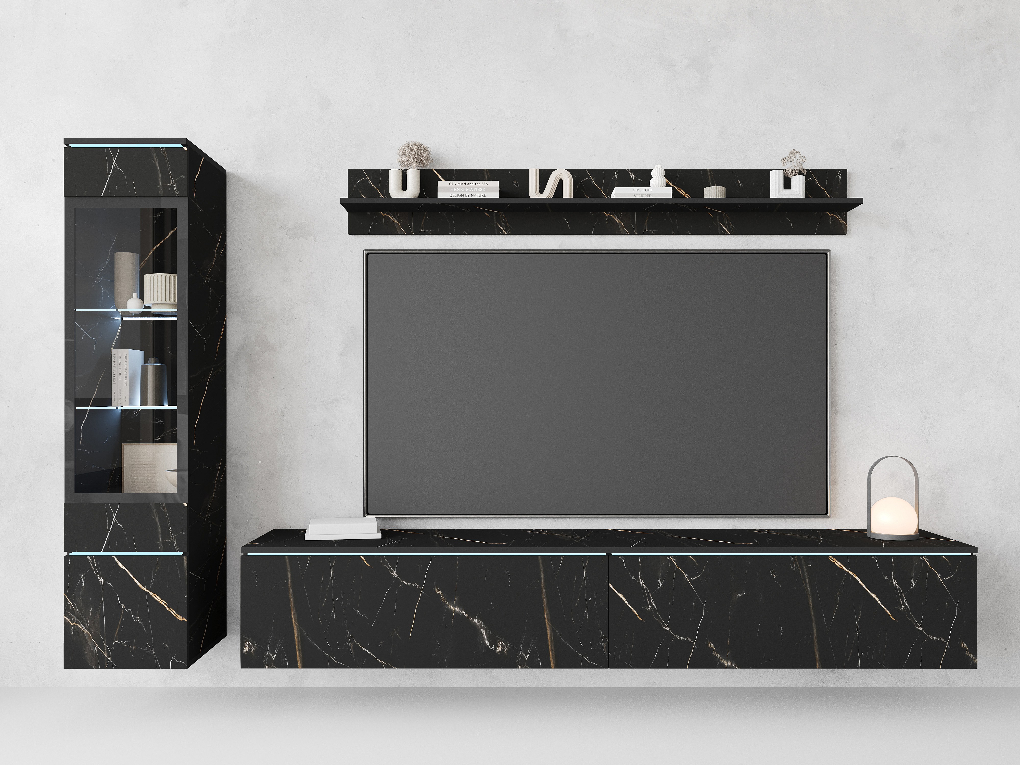Moderne woonkamer meubelset 3-delig – TV-meubel 180 cm, vitrinekast en plank, SAN SEBASTIAN mat, staand of hangend