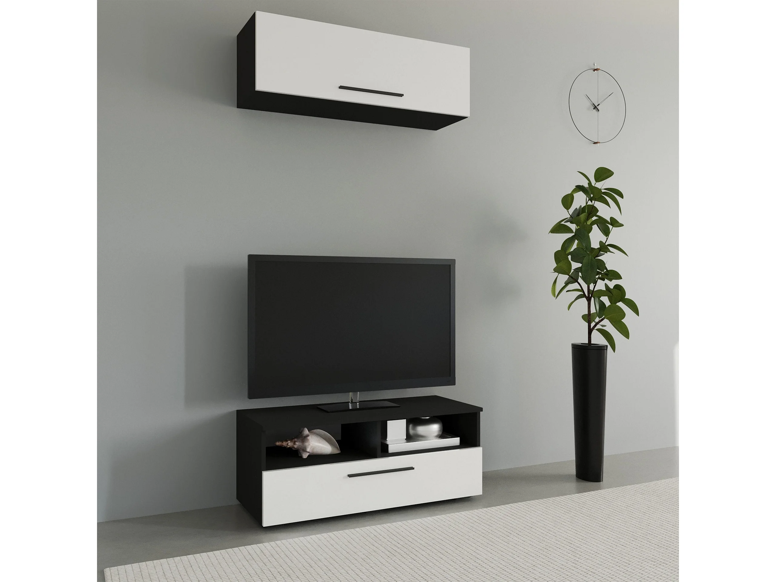 Woonwand Kos V11, zwart/wit hoogglans, MDF, L 95 cm
