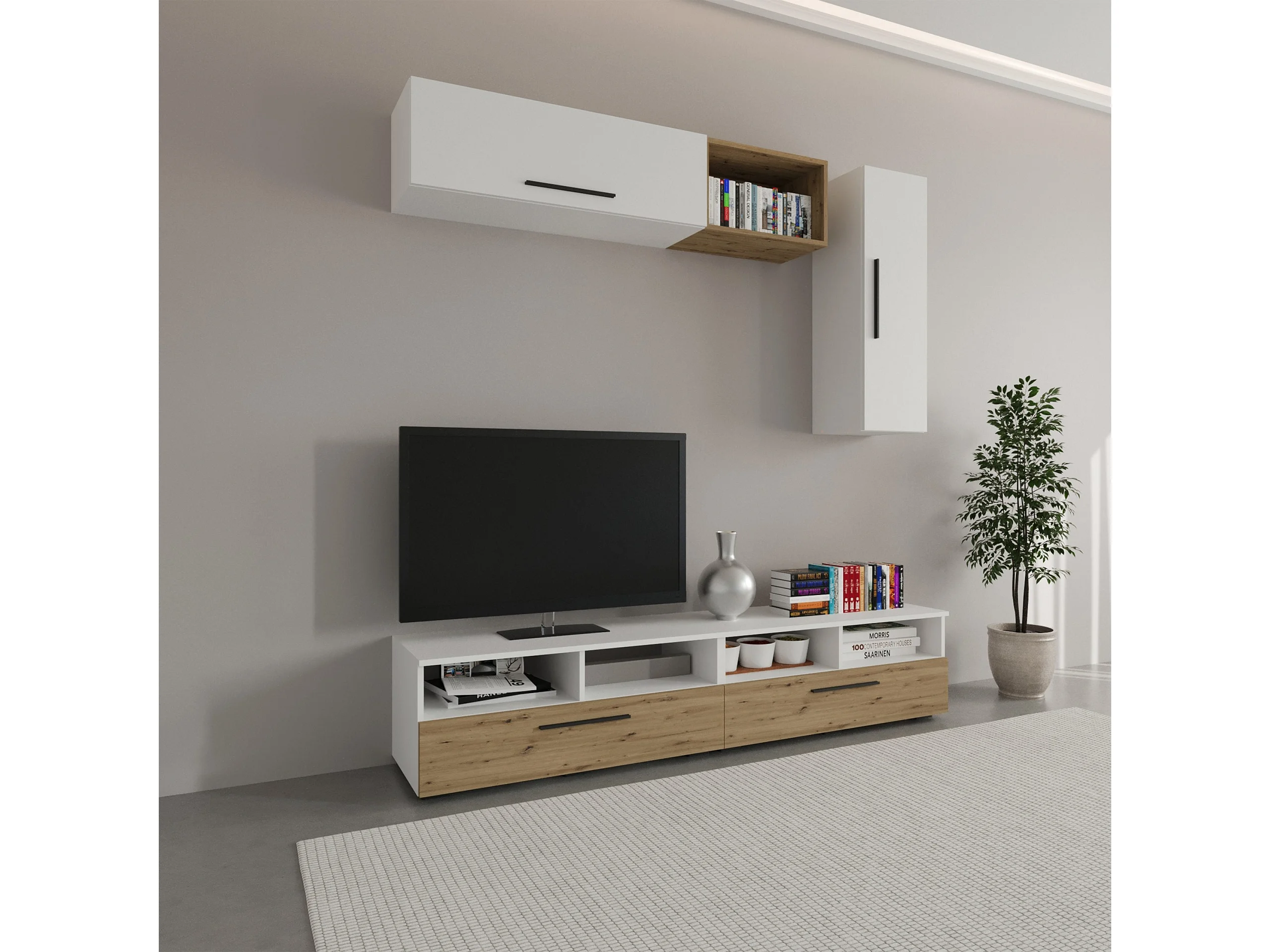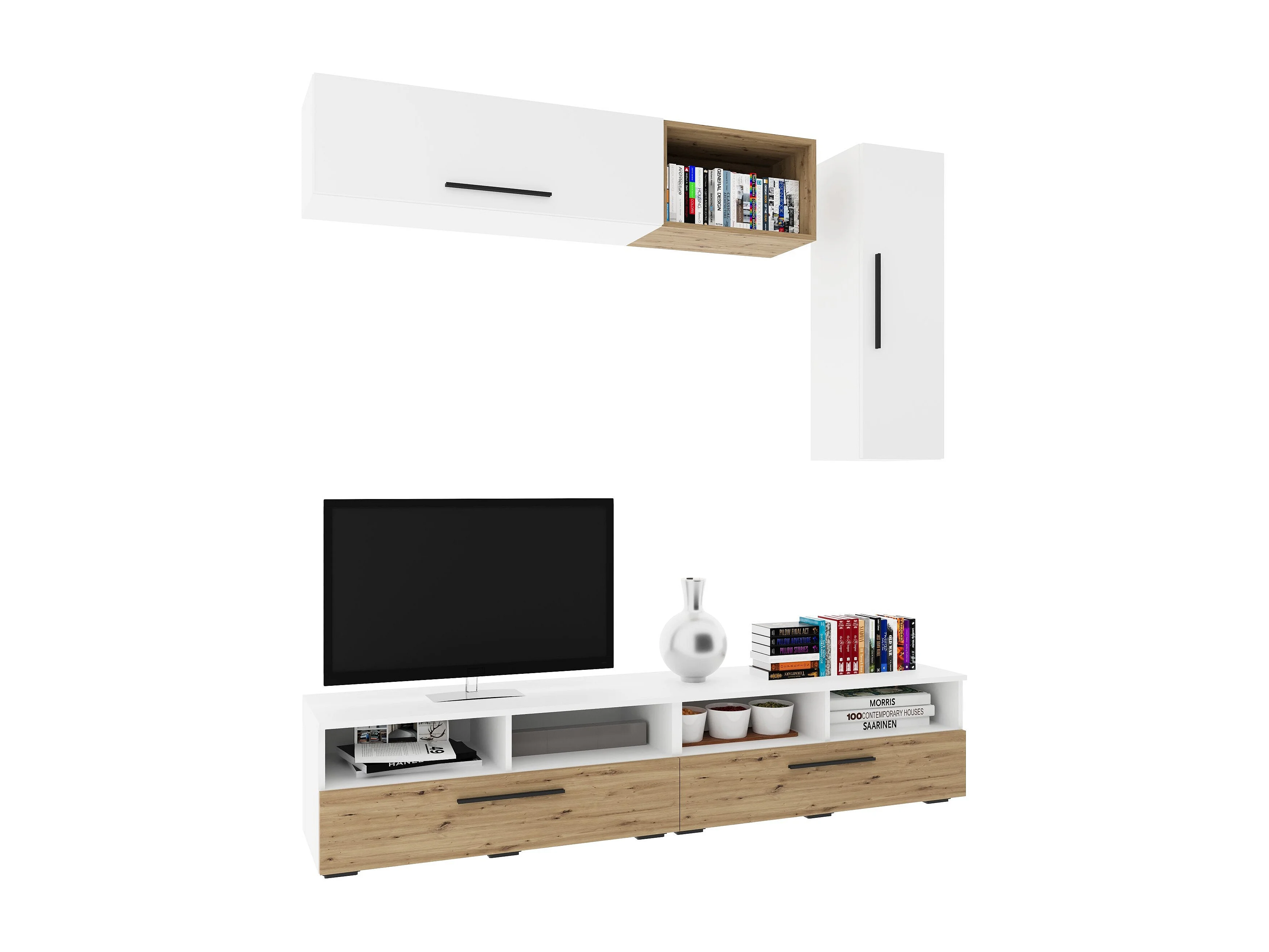 Woonwand Kos V13, wit/artisan eiken, L 190 cm