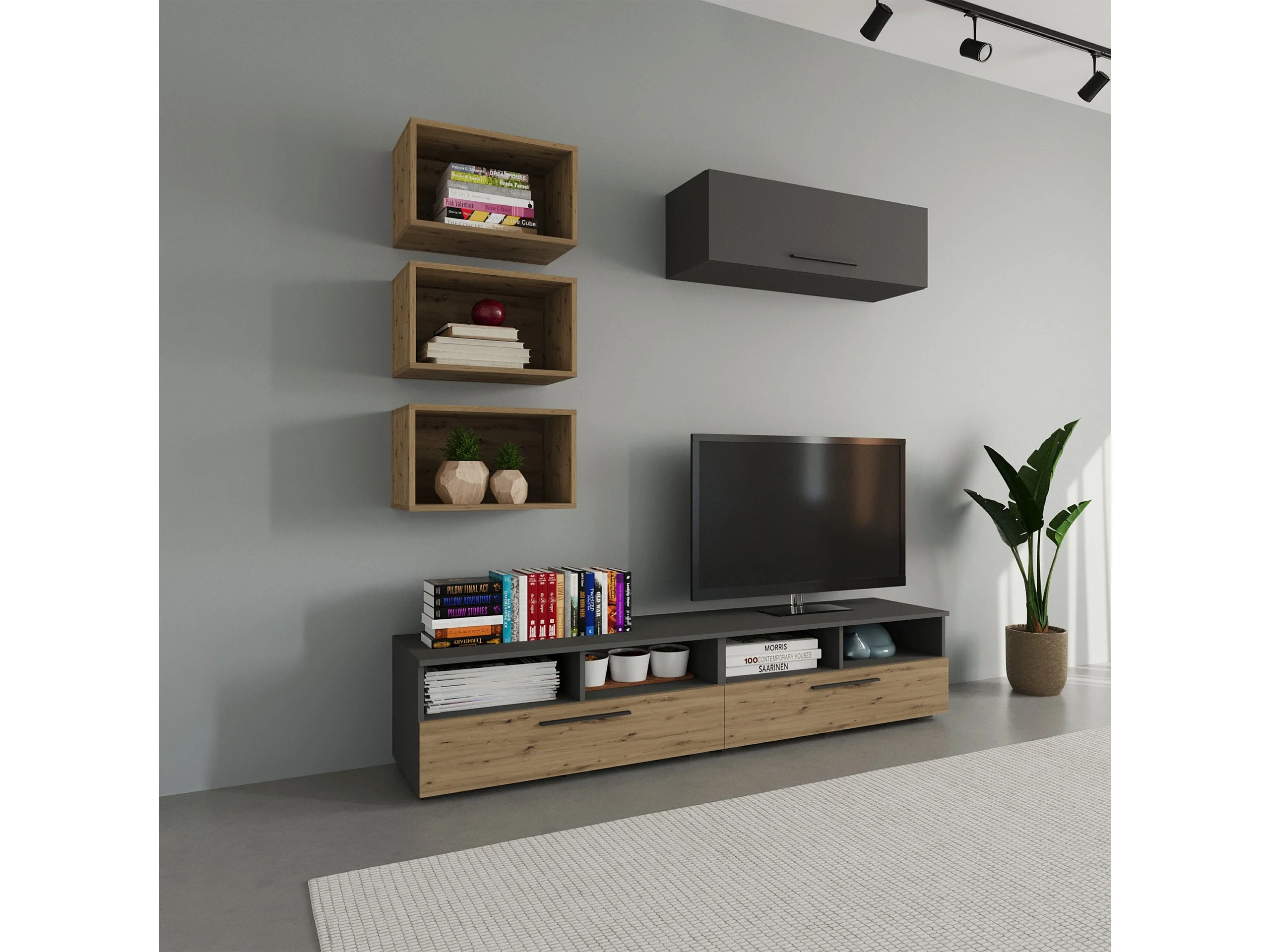 Woonwand Kos V17, antraciet/artisan eiken, L 190 cm