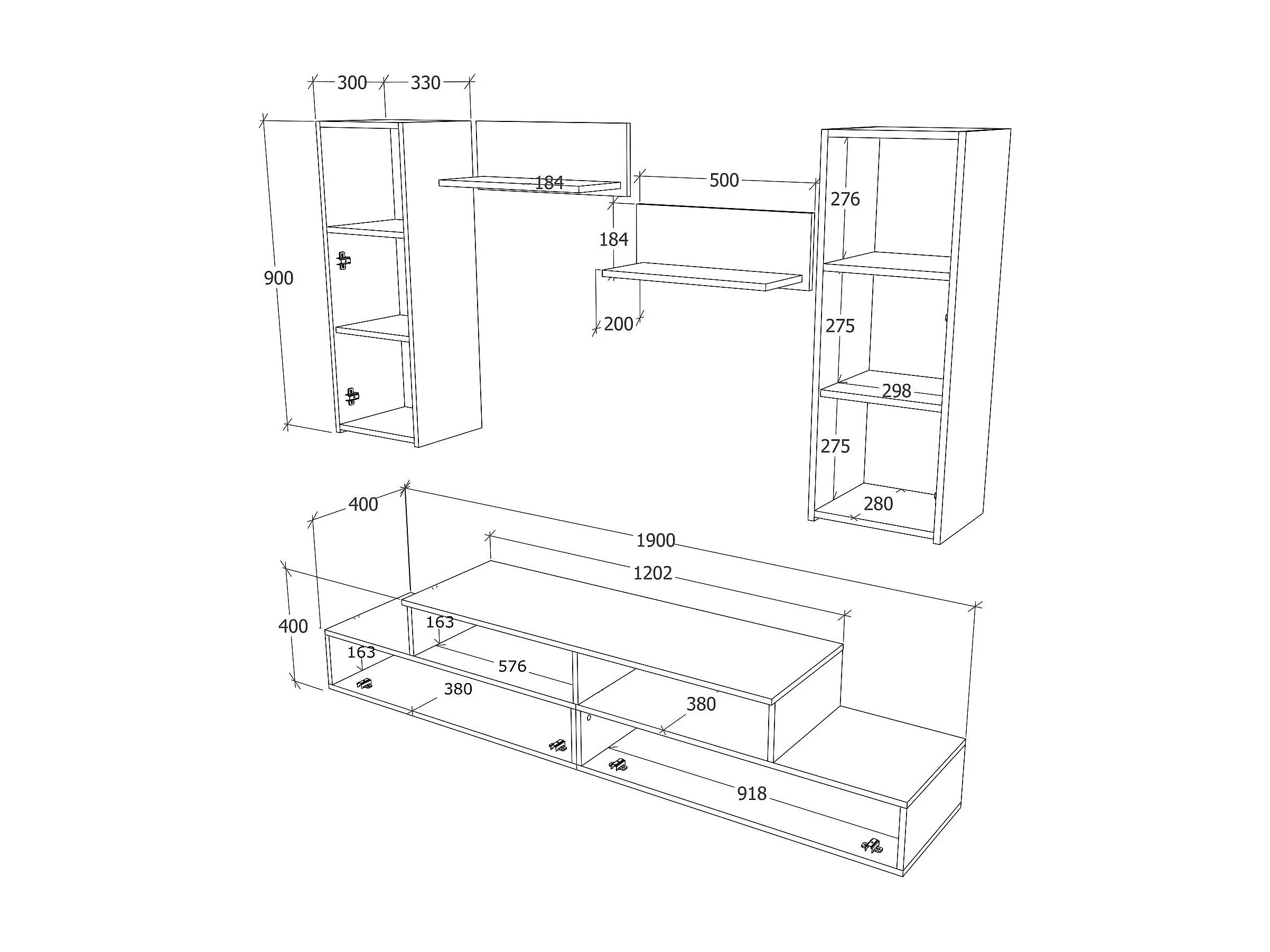 Woonwand Osaka, artisan eiken, L 190 cm