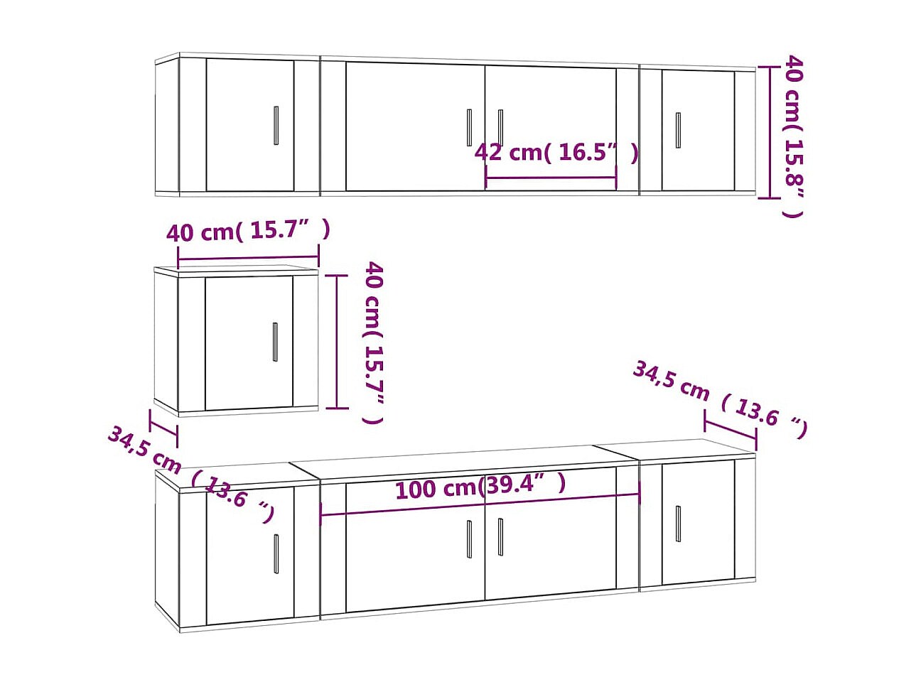 Xarim 7-delige Tv-meubelset bewerkt hout grijs sonoma eikenkleurig