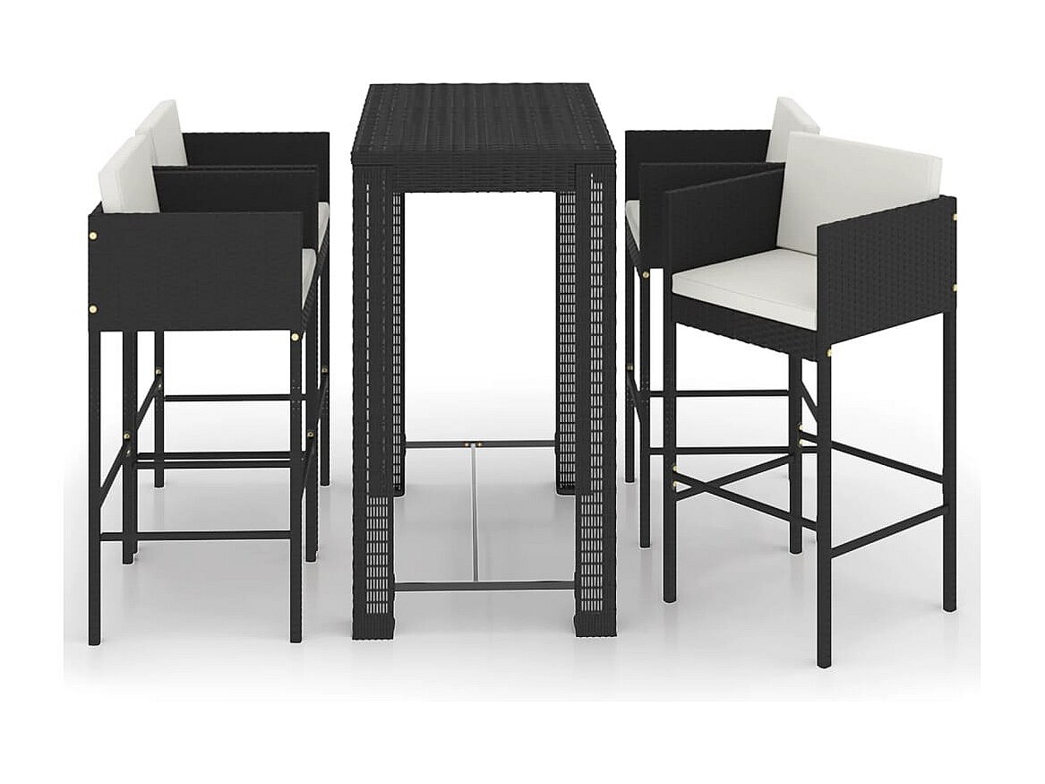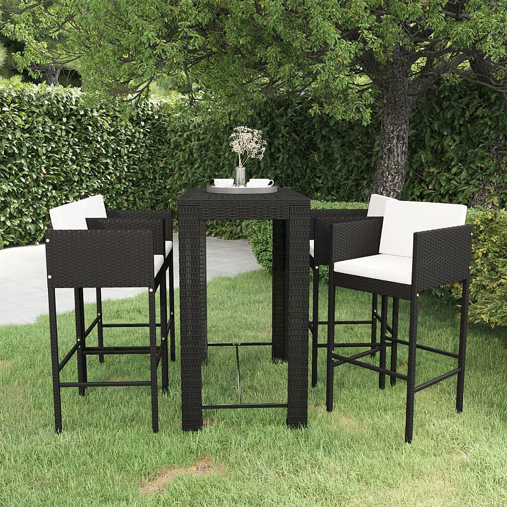 Xerid 5-delige Tuinbarset met kussens poly rattan zwart