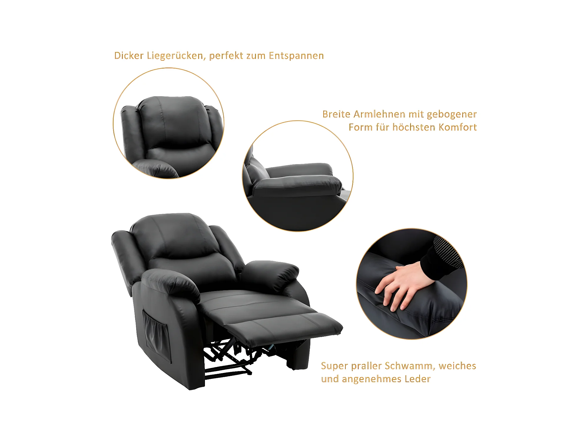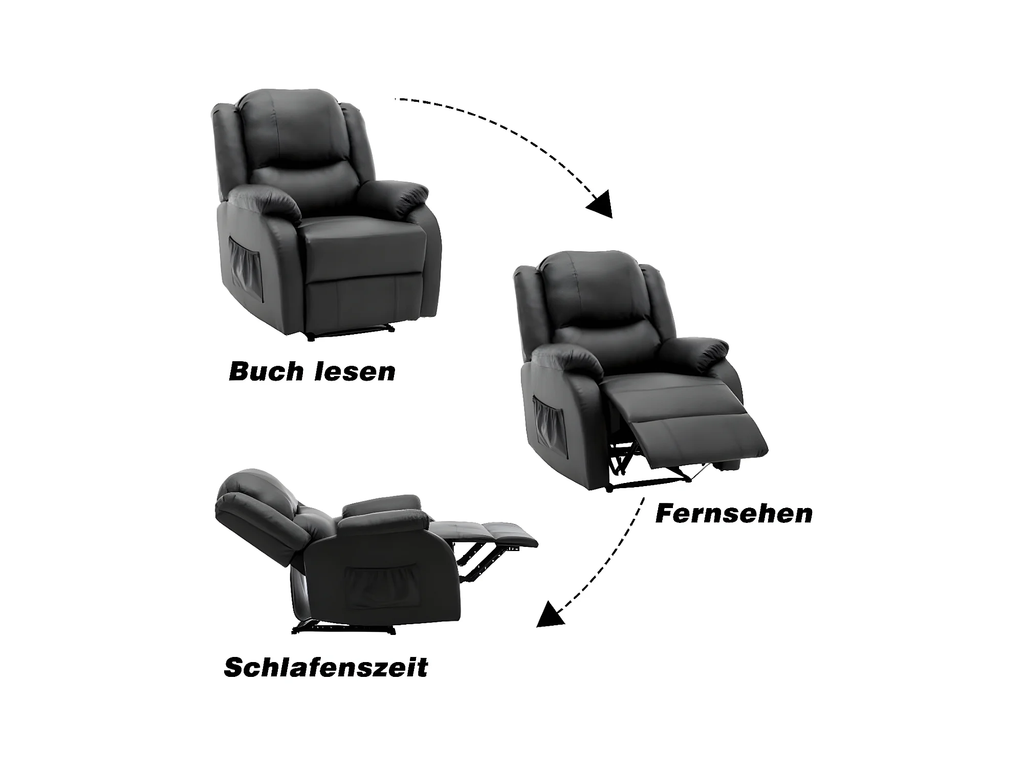 XXL fauteuil met voetenbank, zijzak en PU bekleding