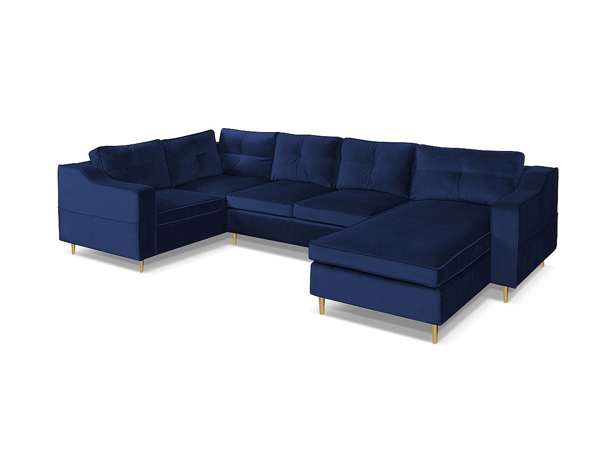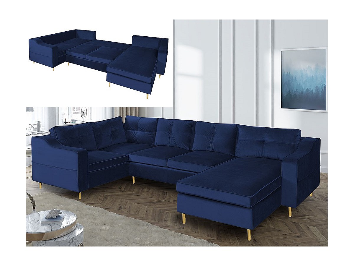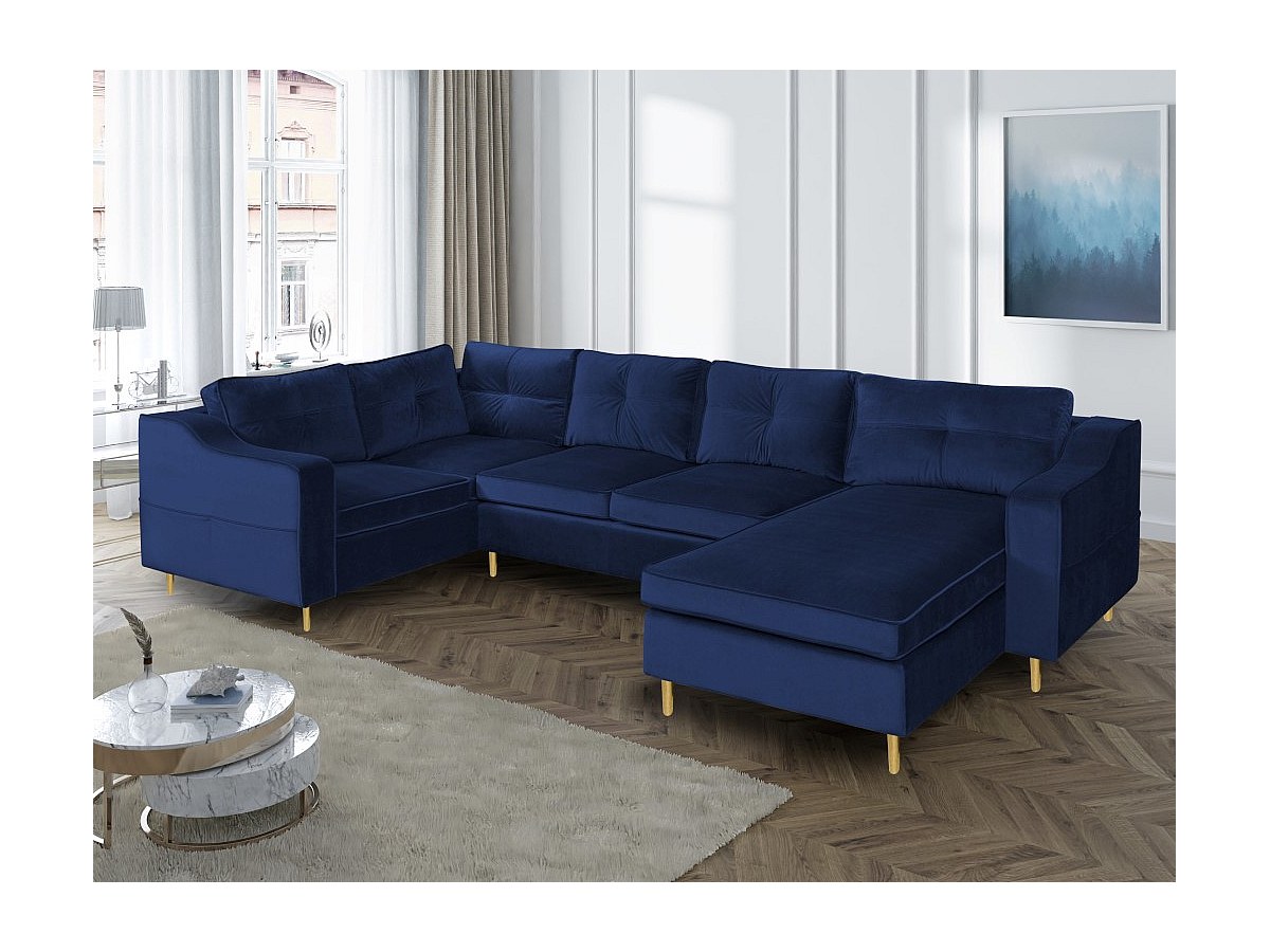 XXL hoekslaapbank van fluweel SORENI - Nachtblauw - Hoek rechts