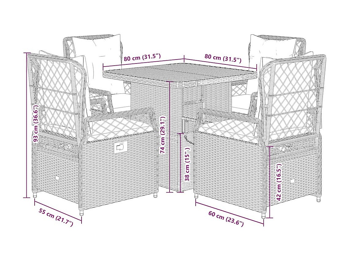 Coleville 5-delige Tuinset met kussens poly rattan zwart