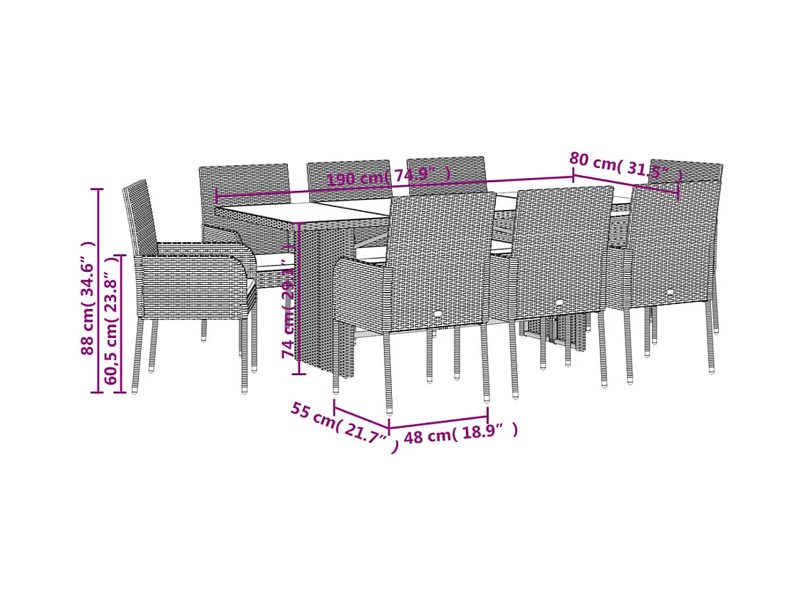 Zenn 17-delige Tuinset met kussens poly rattan zwart