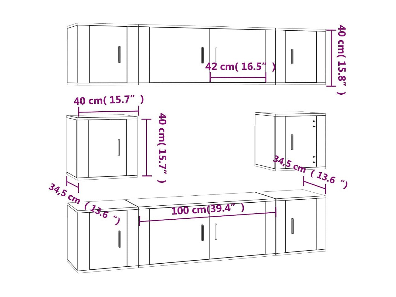 Ywar 8-delige Tv-meubelset bewerkt hout betongrijs