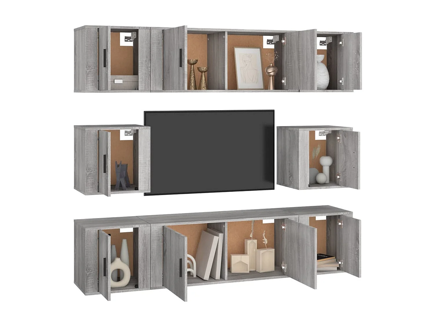 Ywar 8-delige Tv-meubelset bewerkt hout grijs sonoma eikenkleurig