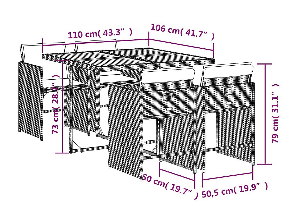Zele 5-delige Tuinset met kussens poly rattan grijs