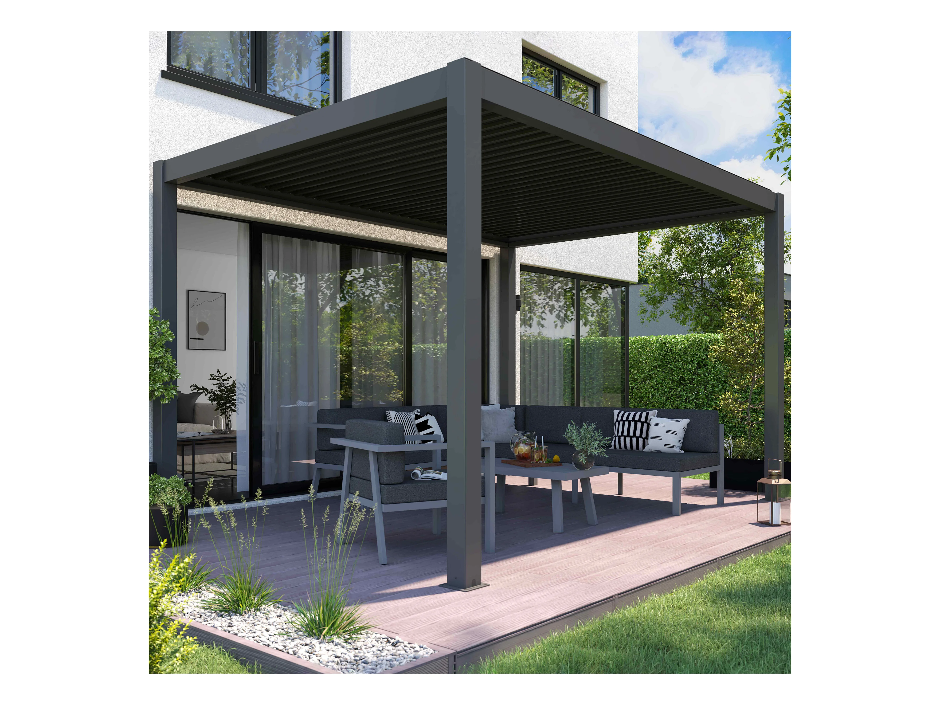 Bioklimatologische pergola 4x3m in antraciet grijs aluminium met verstelbare lamellen HYDRA