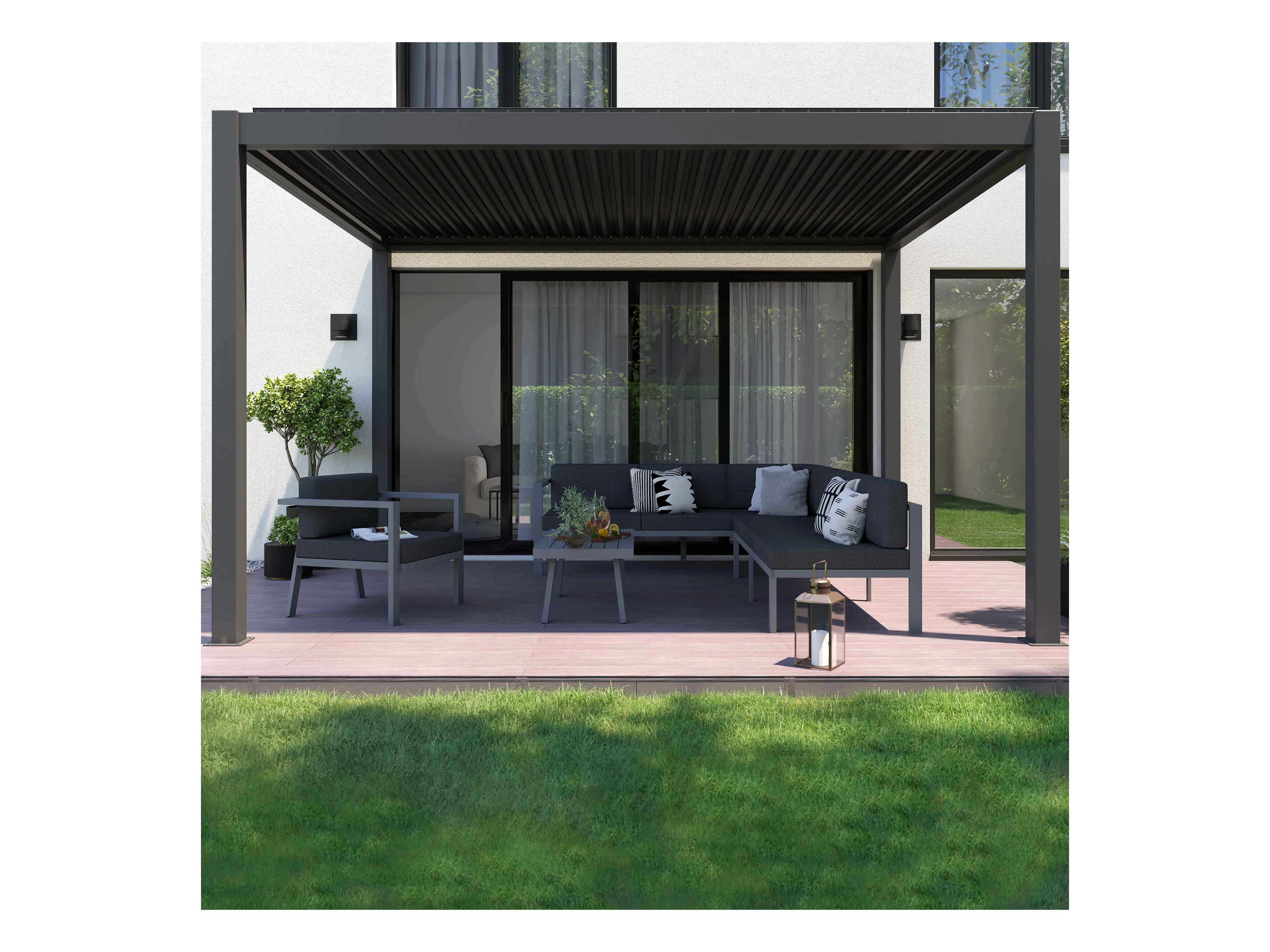 Bioklimatologische pergola 4x3m in antraciet grijs aluminium met verstelbare lamellen HYDRA