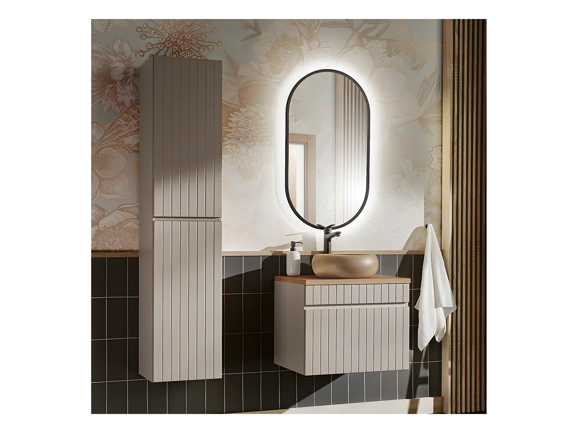 80cm enkele wastafel en Zelie kasjmier en hout hoge kast