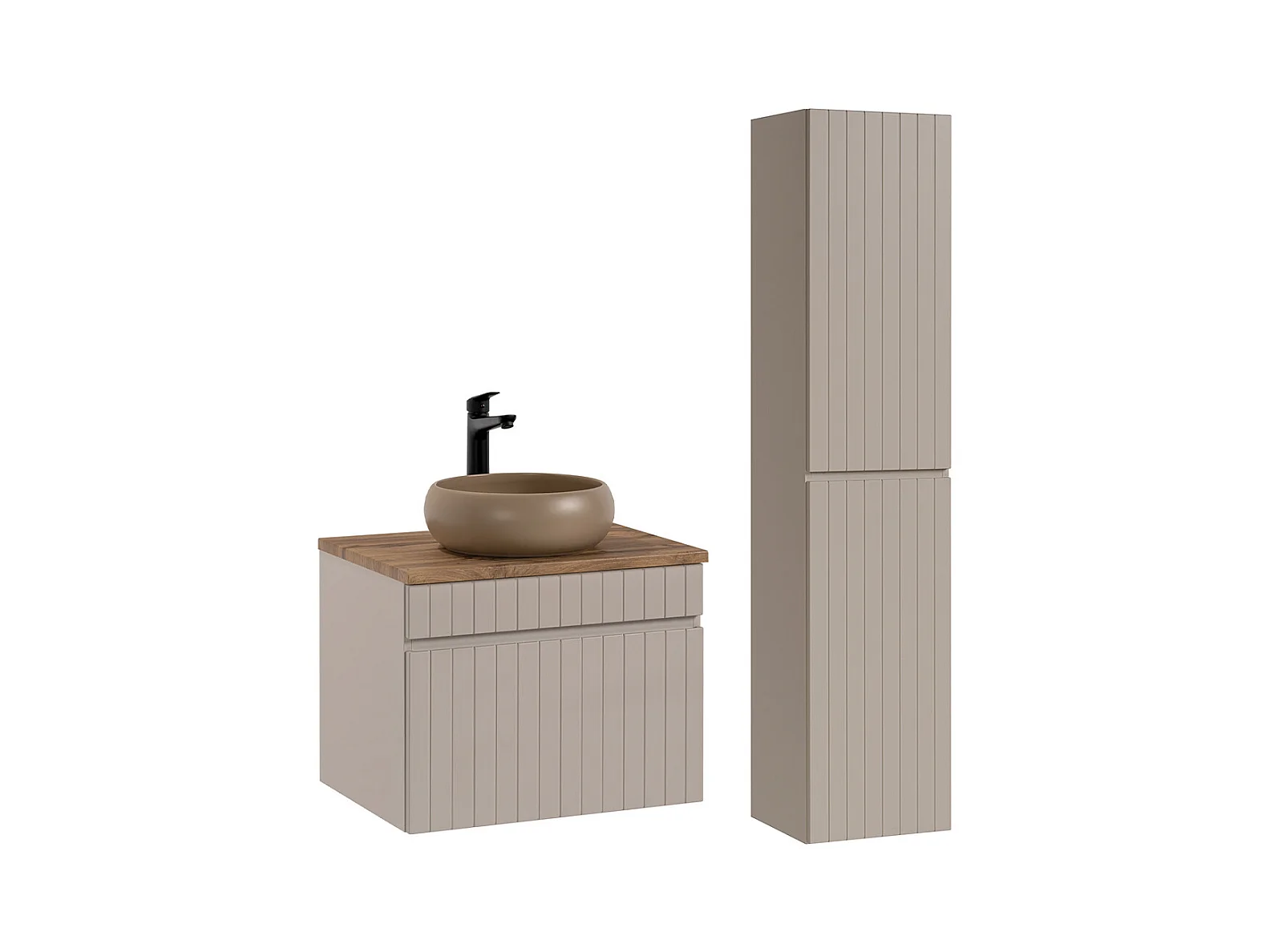 100cm enkele wastafel en Zelie kasjmier en hout hoge meubelset