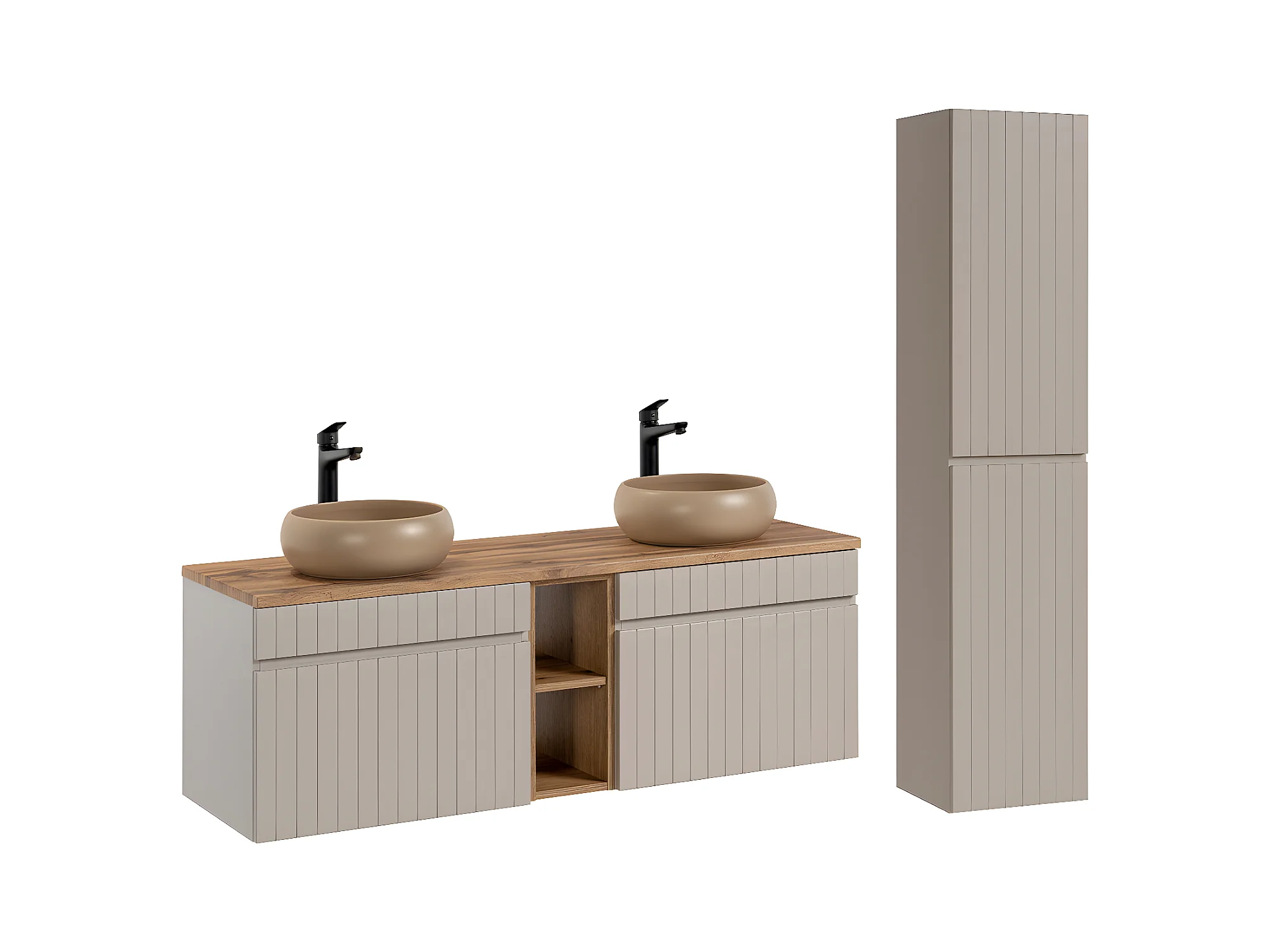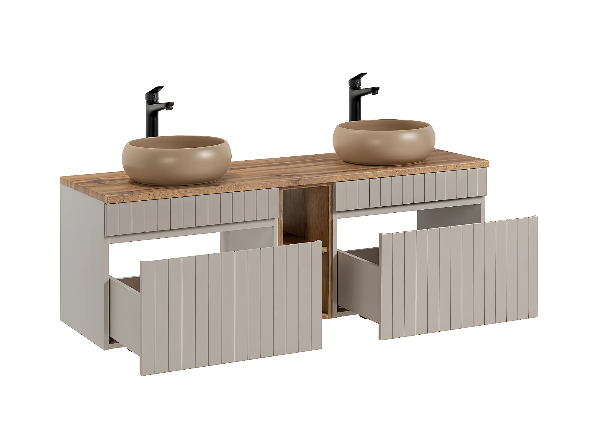 Adriel Cashmere hout- en steeneffect dubbele wastafel 140cm 2 nissen en sokkel