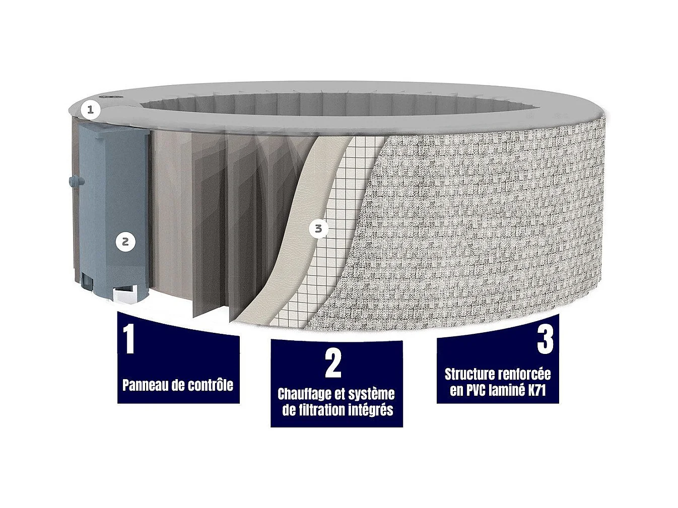 Opblaasbare ronde spa voor 6 personen MINORCA - Ontspanning met familie of vrienden, 138 jets, snel opwarmen tot 40°C
