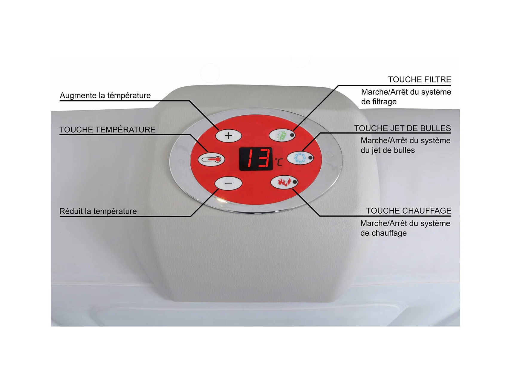Opblaasbare spa "Malaga" 4 plaatsen Grijs PVC - Luchtjets - Verwarming - Filtratie - Digitaal bedieningspaneel