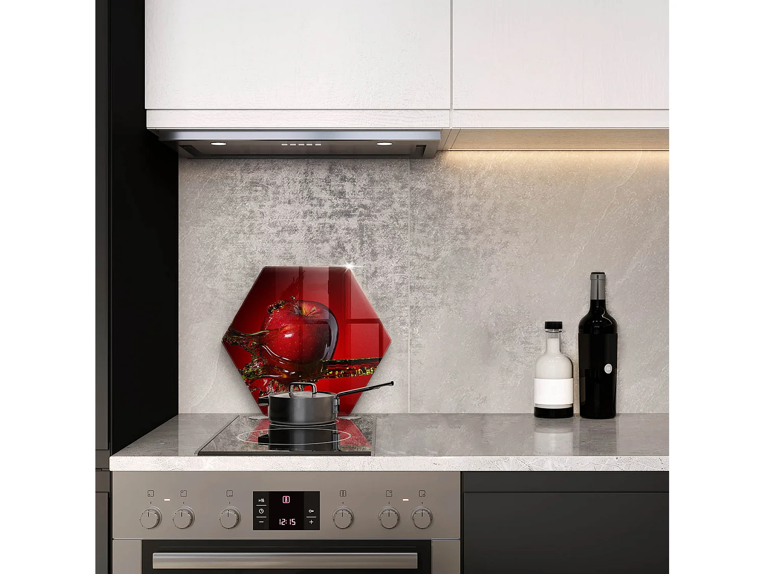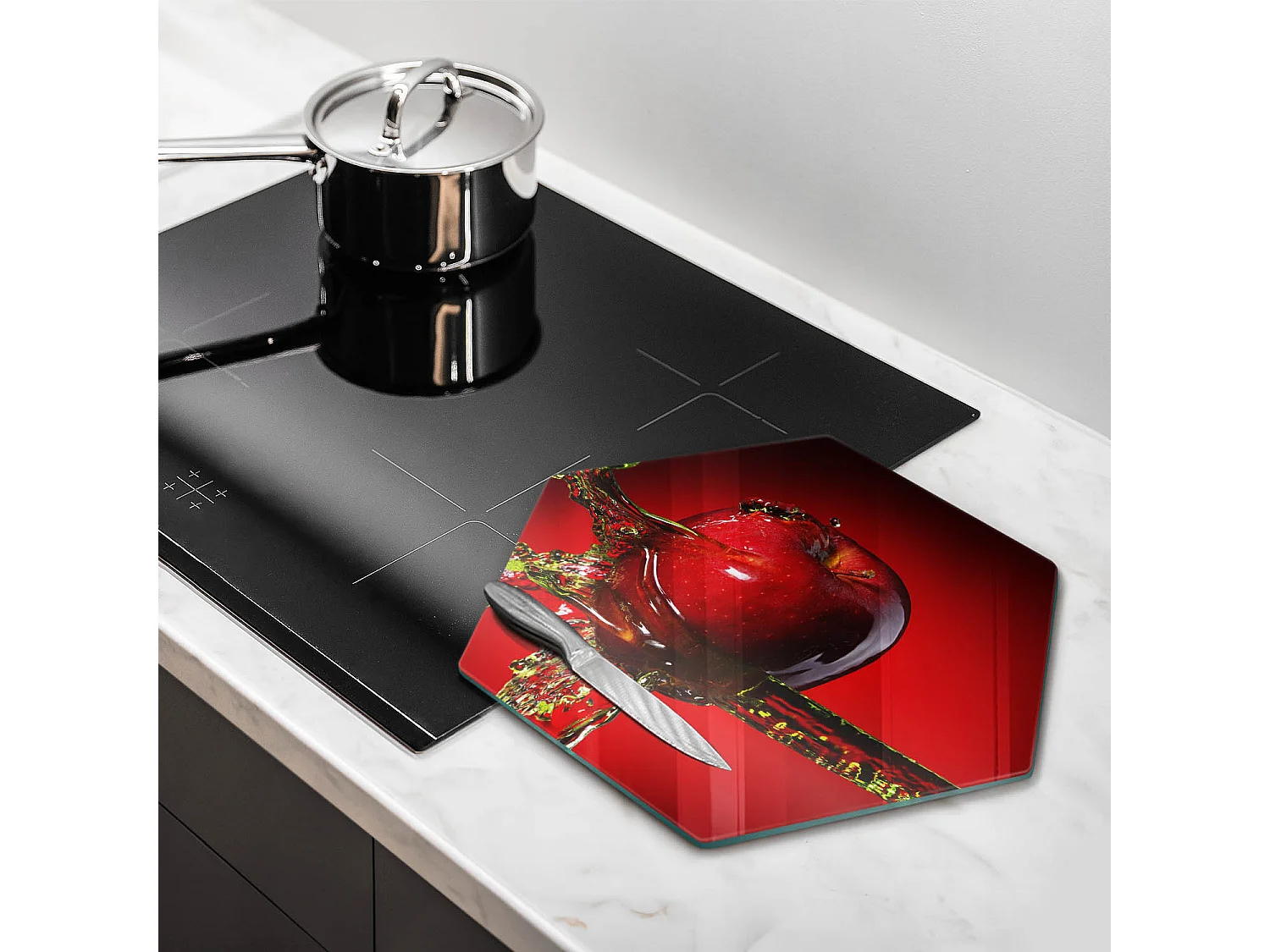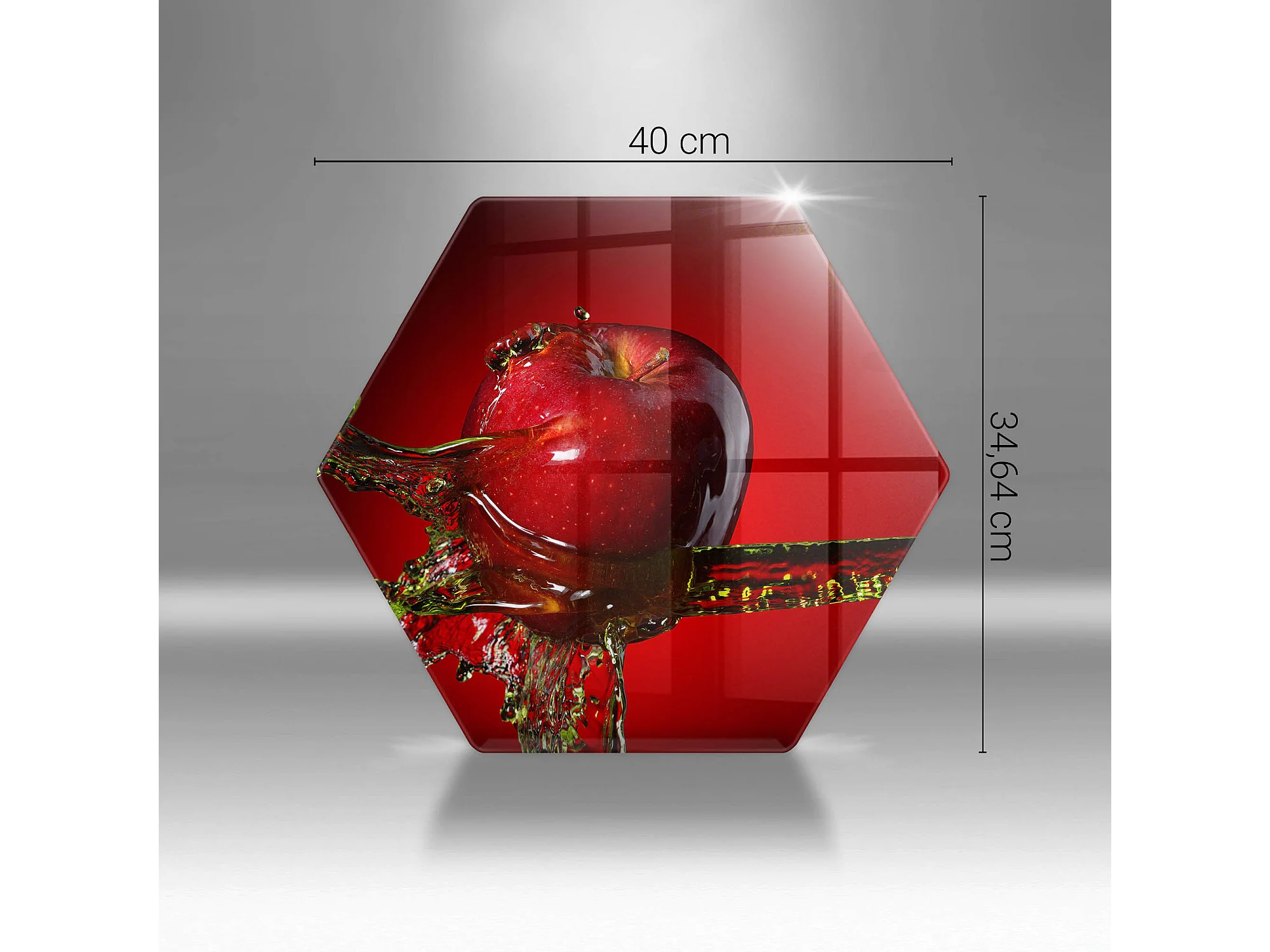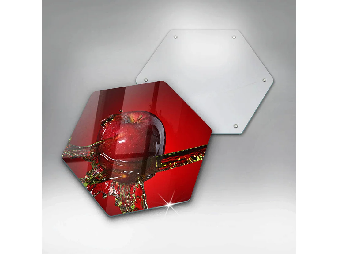 Zeshoekig glazen keukenbord, 40 cm Fruit: appel in water