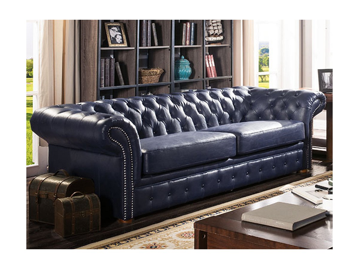 Driezitsbank chesterfield CLOTAIRE van 100% leer - nacht blauw