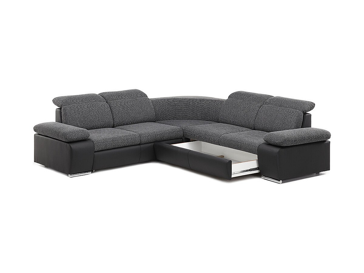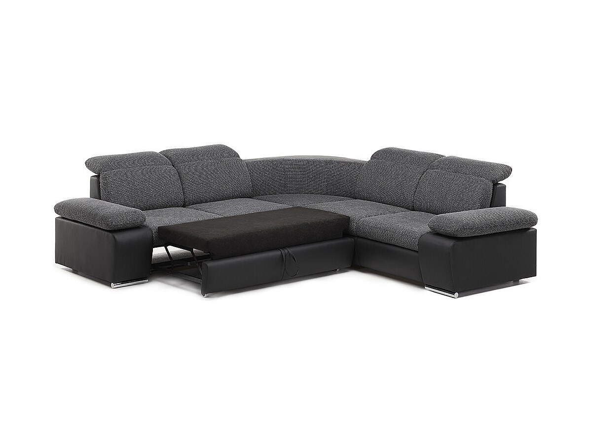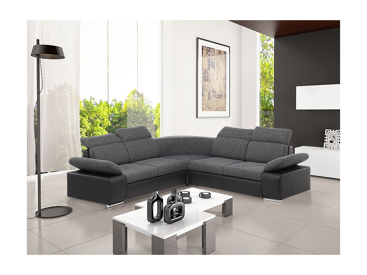 Symmetrische hoekbank van kunstleer en stof RABELAIS - Tweekleurig antraciet en zwart