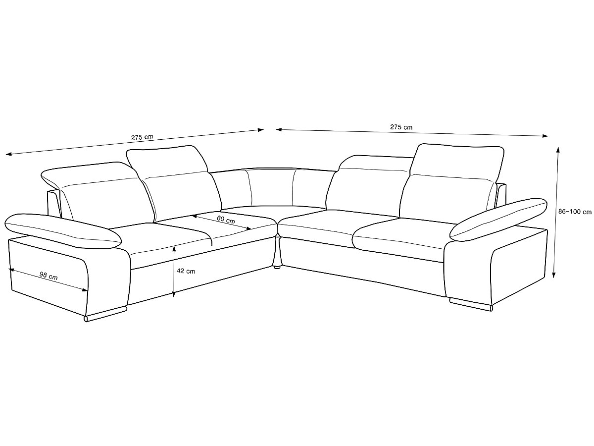 Hoogte met opgeklapte hoofdsteunen: 100 cm