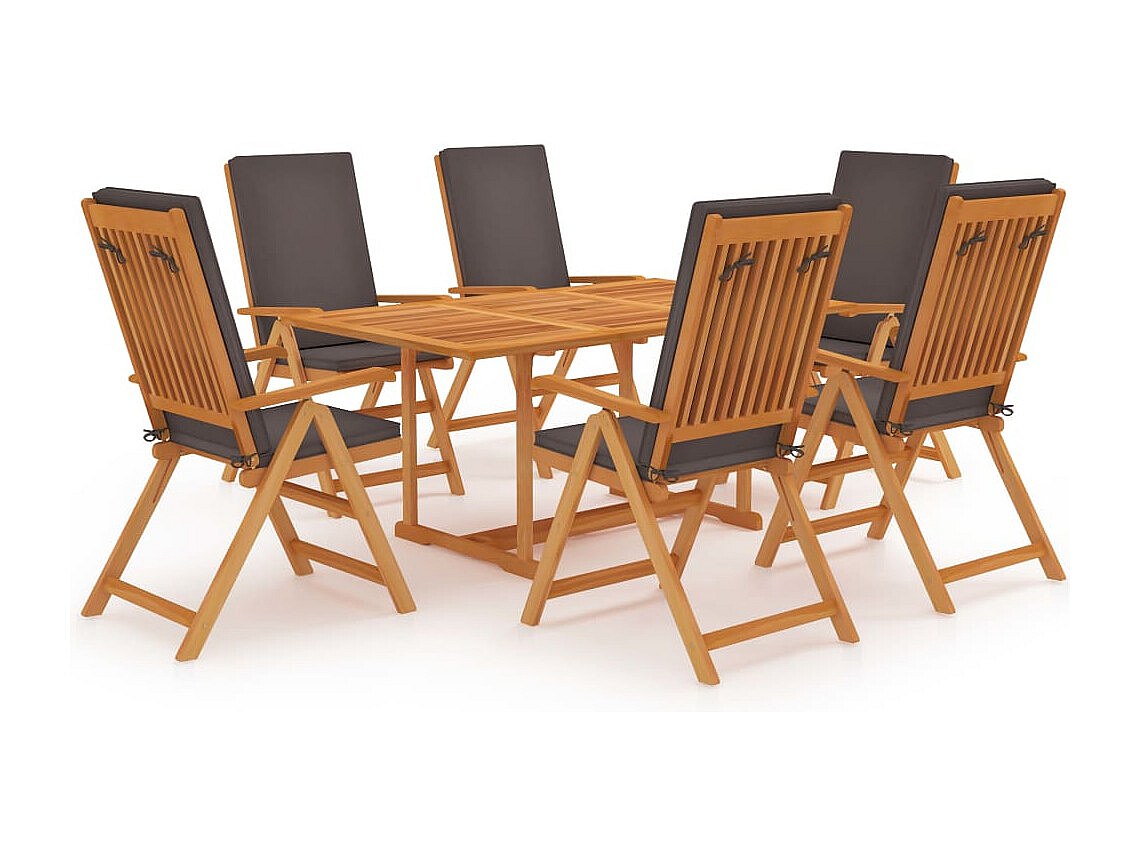 Zoran 7-delige Tuinset met grijze kussens massief teakhout