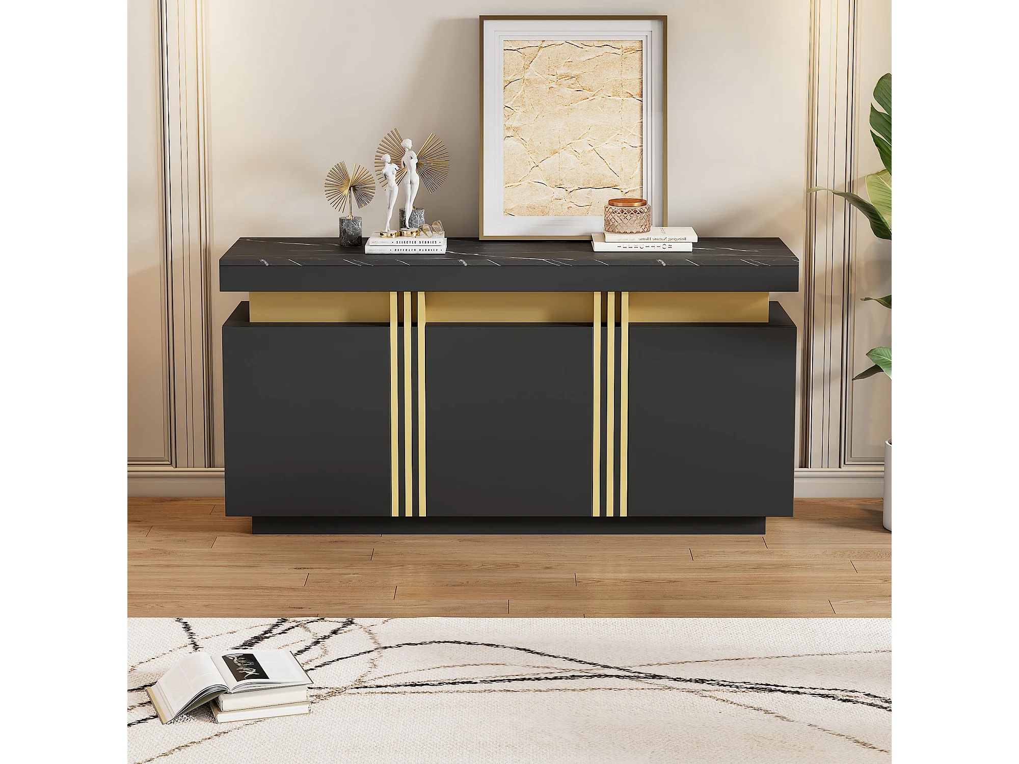 Zwart dressoir met 3 deuren en verstelbare planken - perfect voor woon- en eetkamers