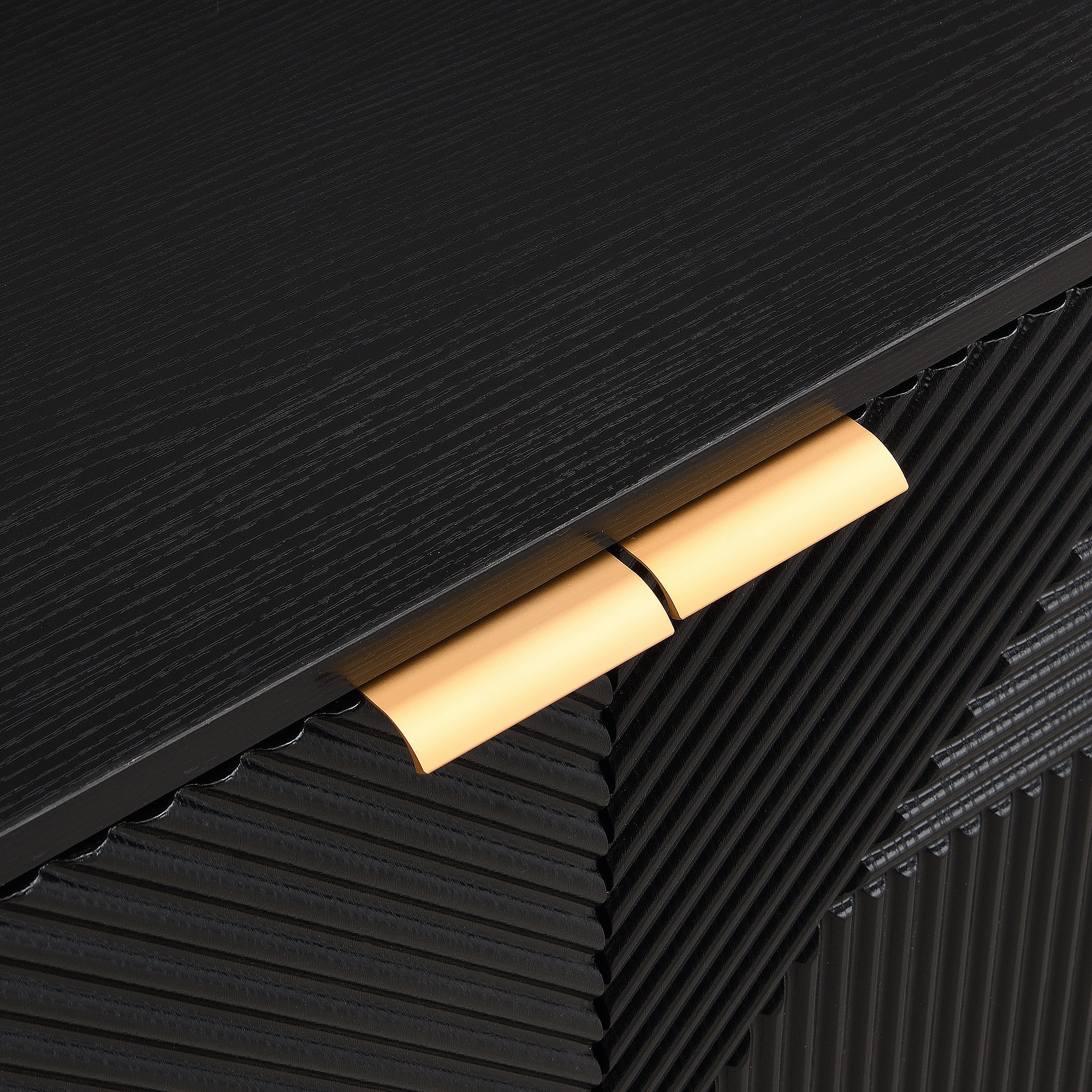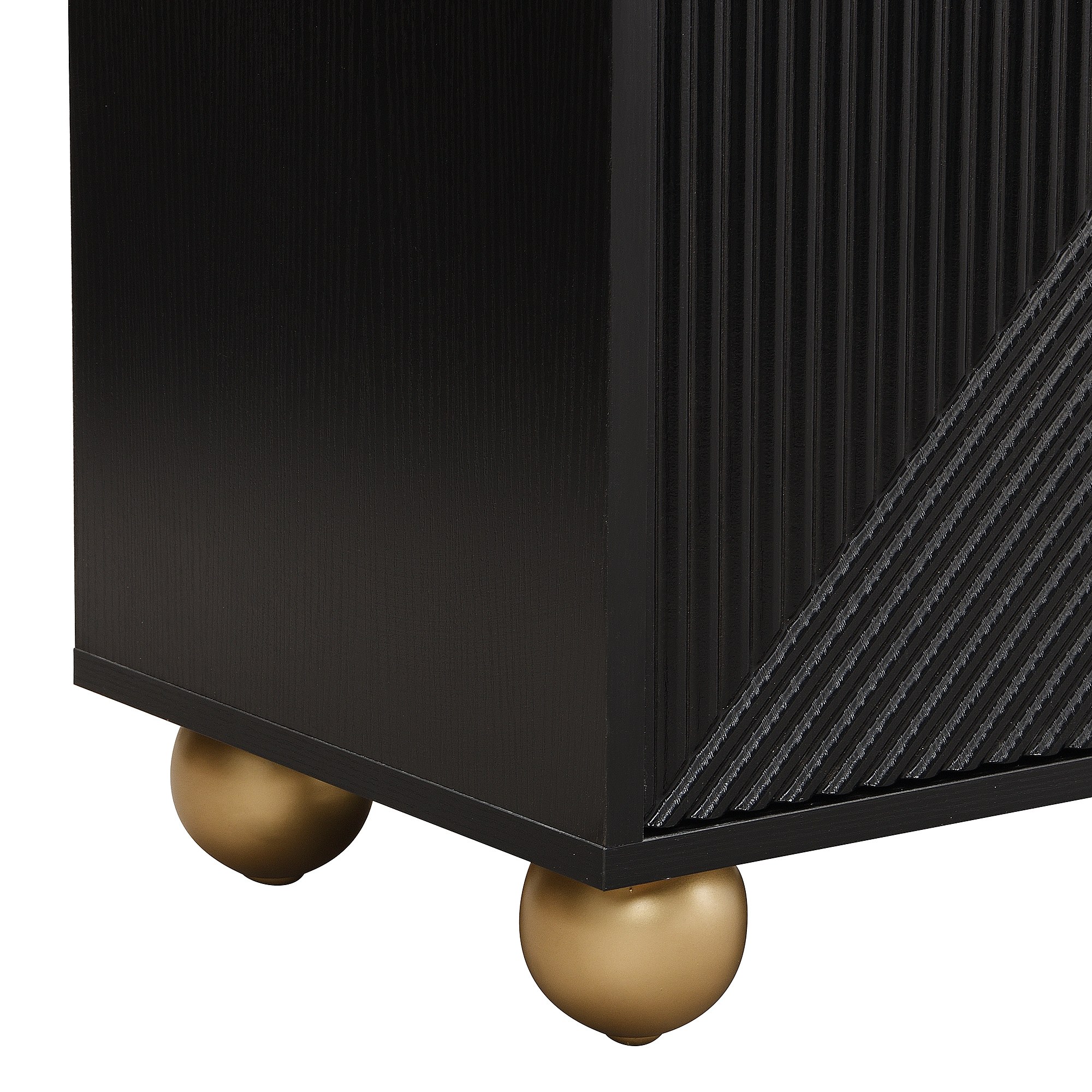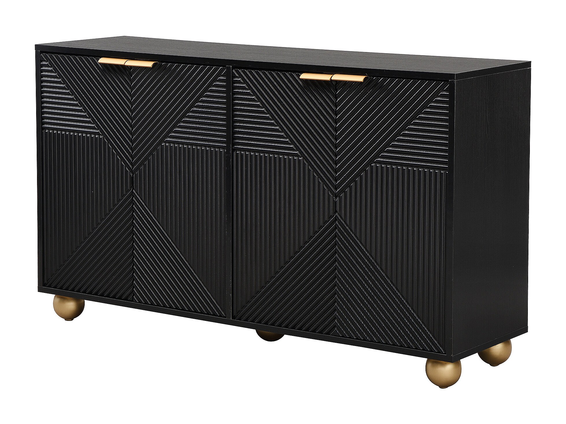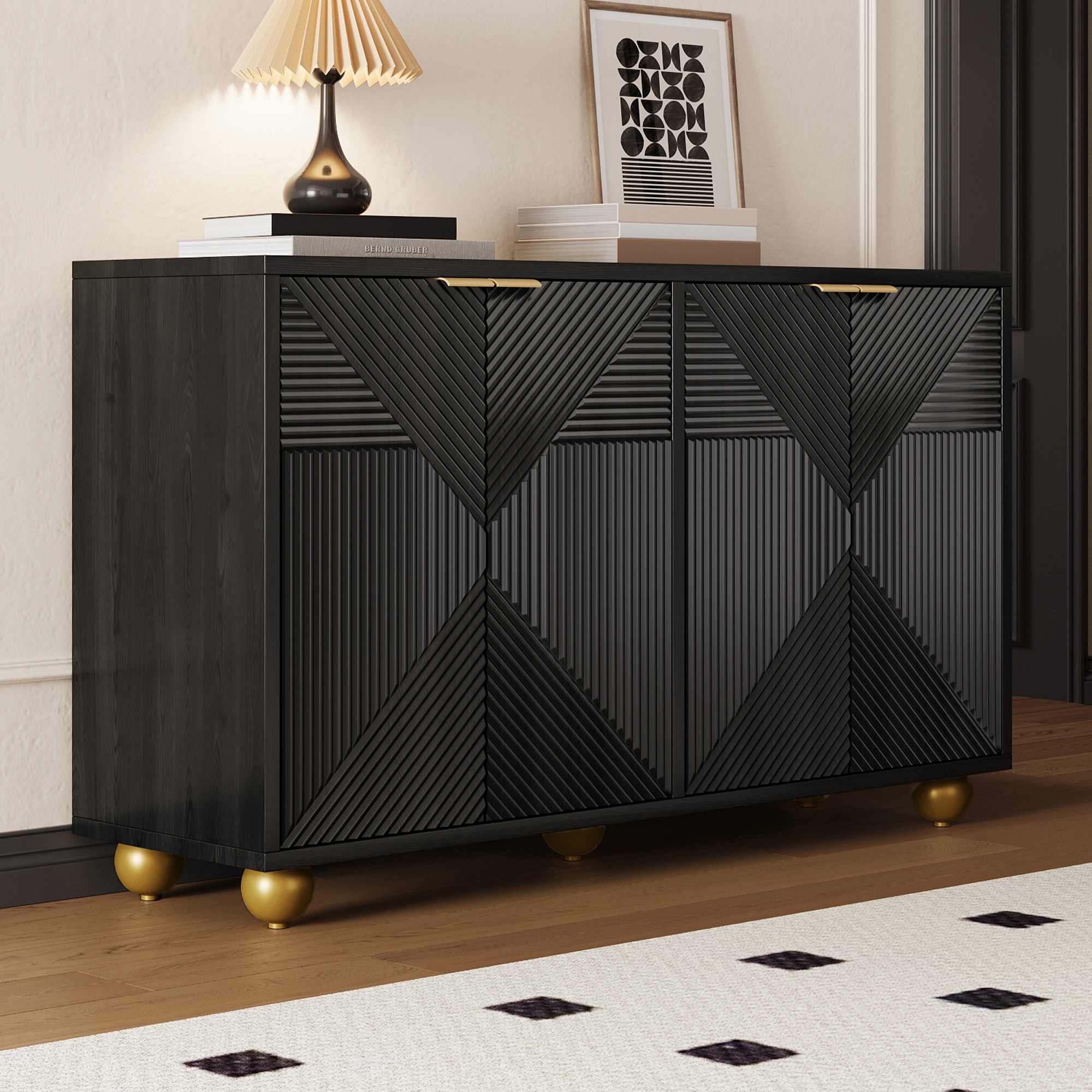 Zwart dressoir met 4 textuurdeuren, verstelbare binnenplanken en gouden bolvormige poten