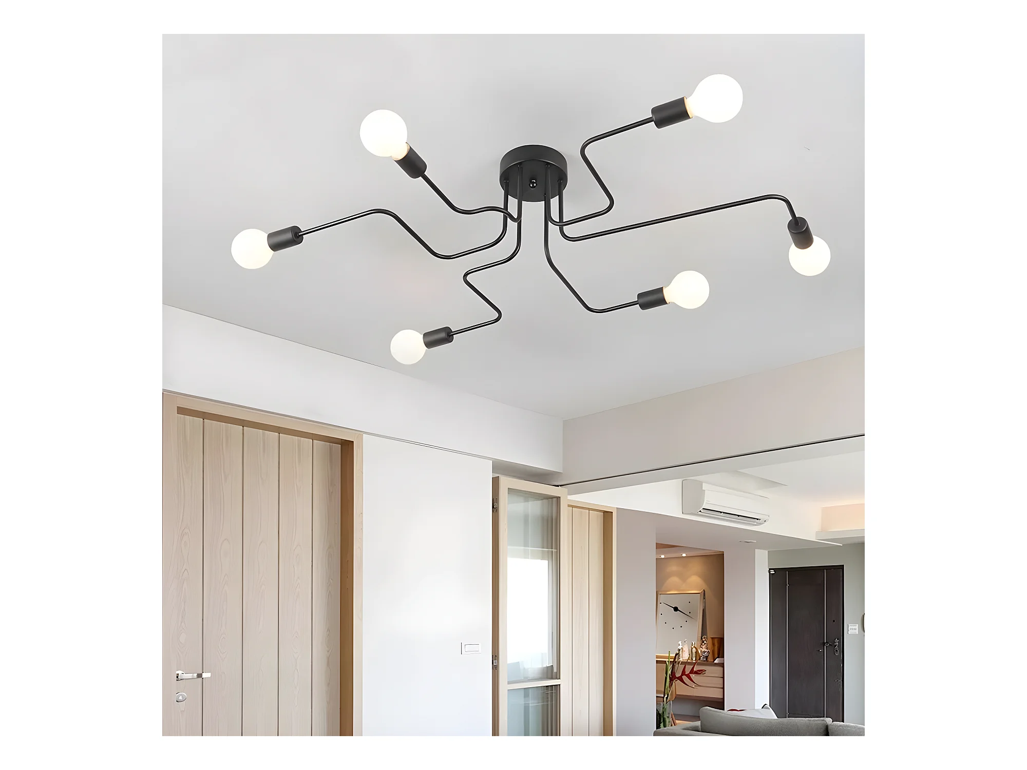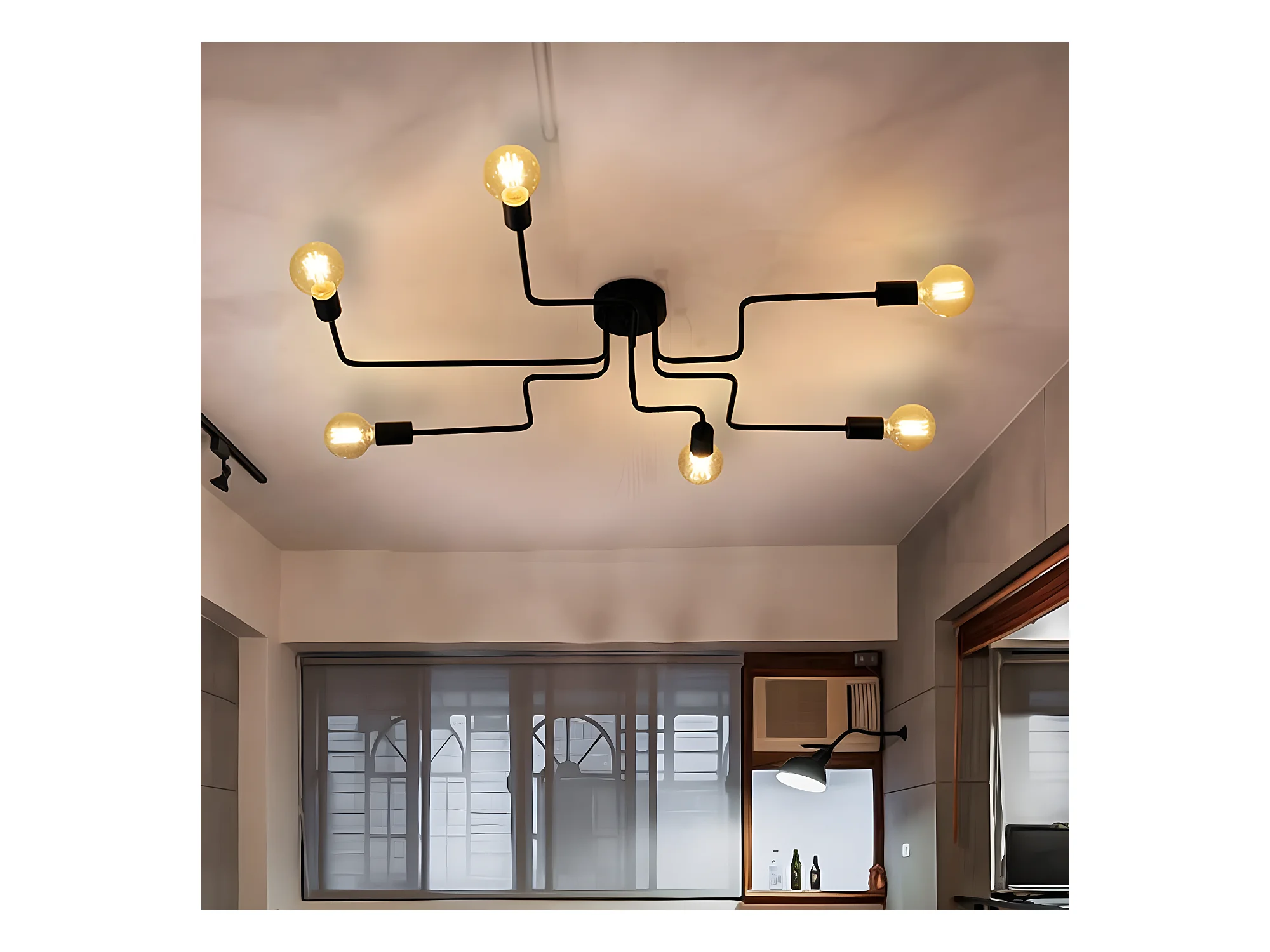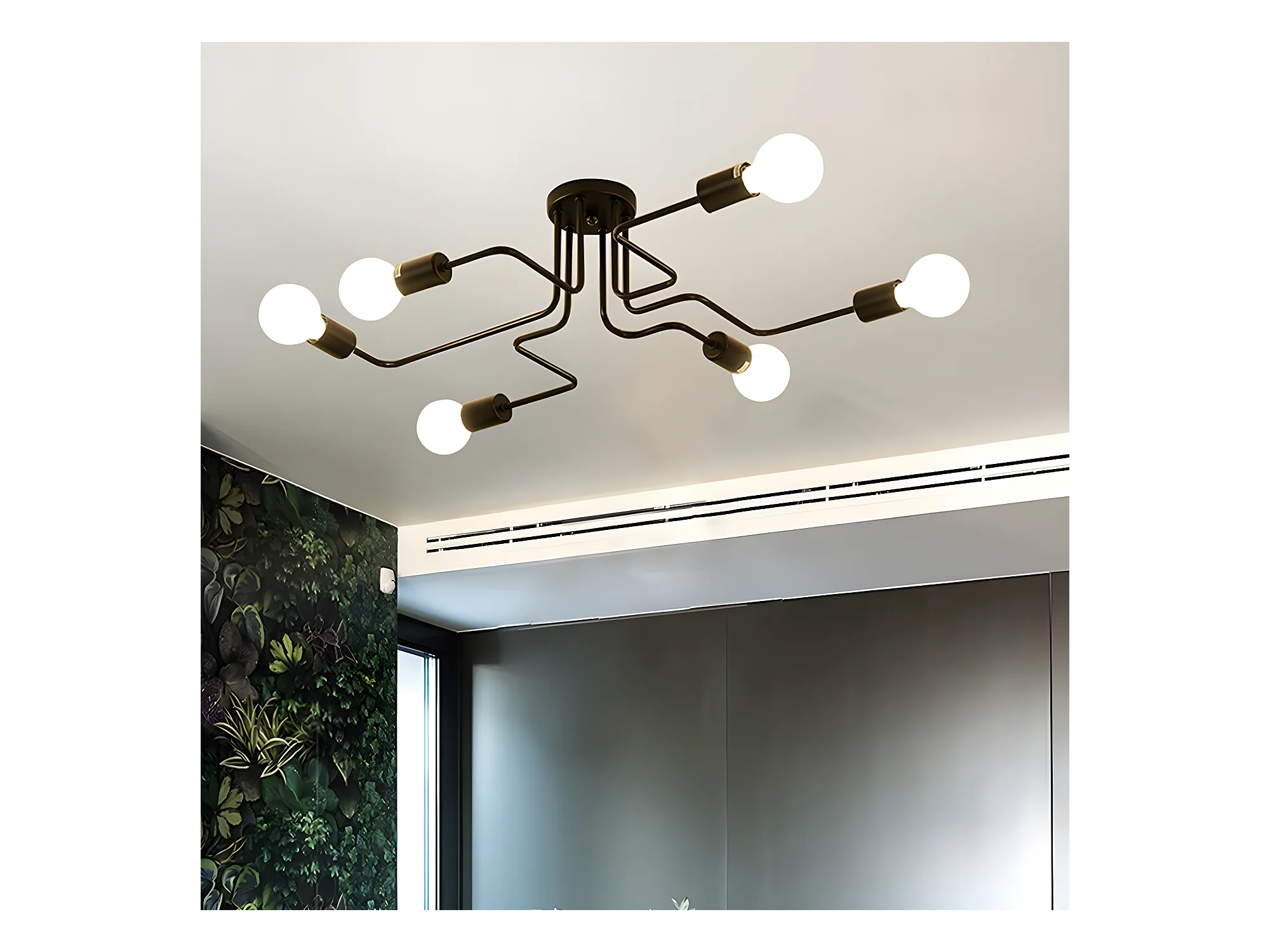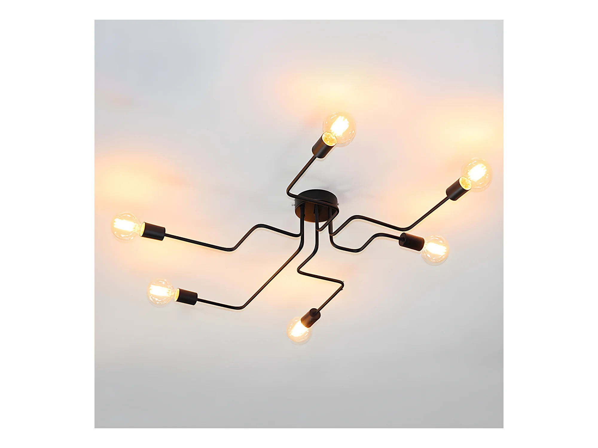 Zwart industrieel plafondlicht E27, L800*W650*H120mm, zwart, in metaal, zonder bollen